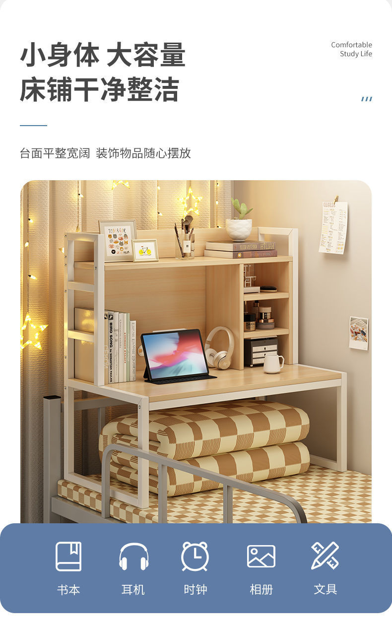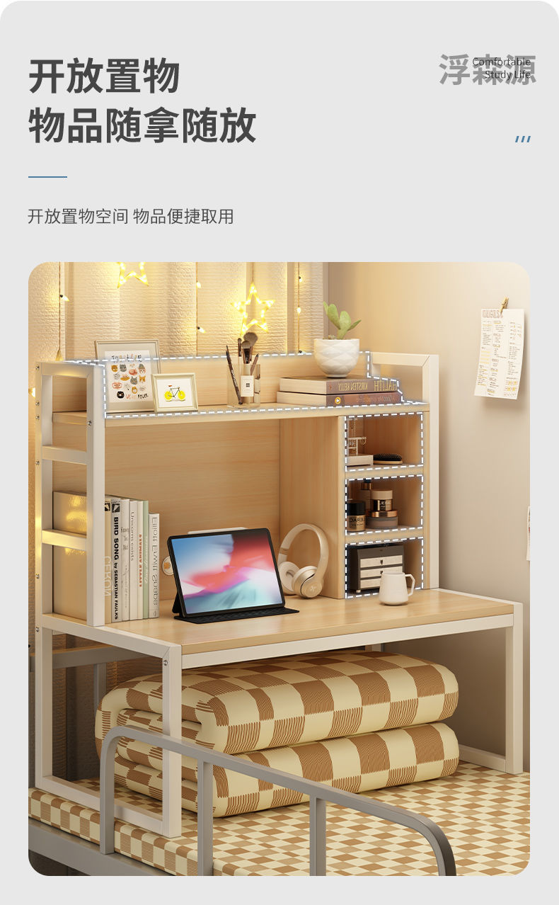 컴퓨터 책상 이층 침대 침실 게으른 책상 철제 프레임 학생 기숙사 침실 노트북 학습 침대 책상 무역스토어 가기