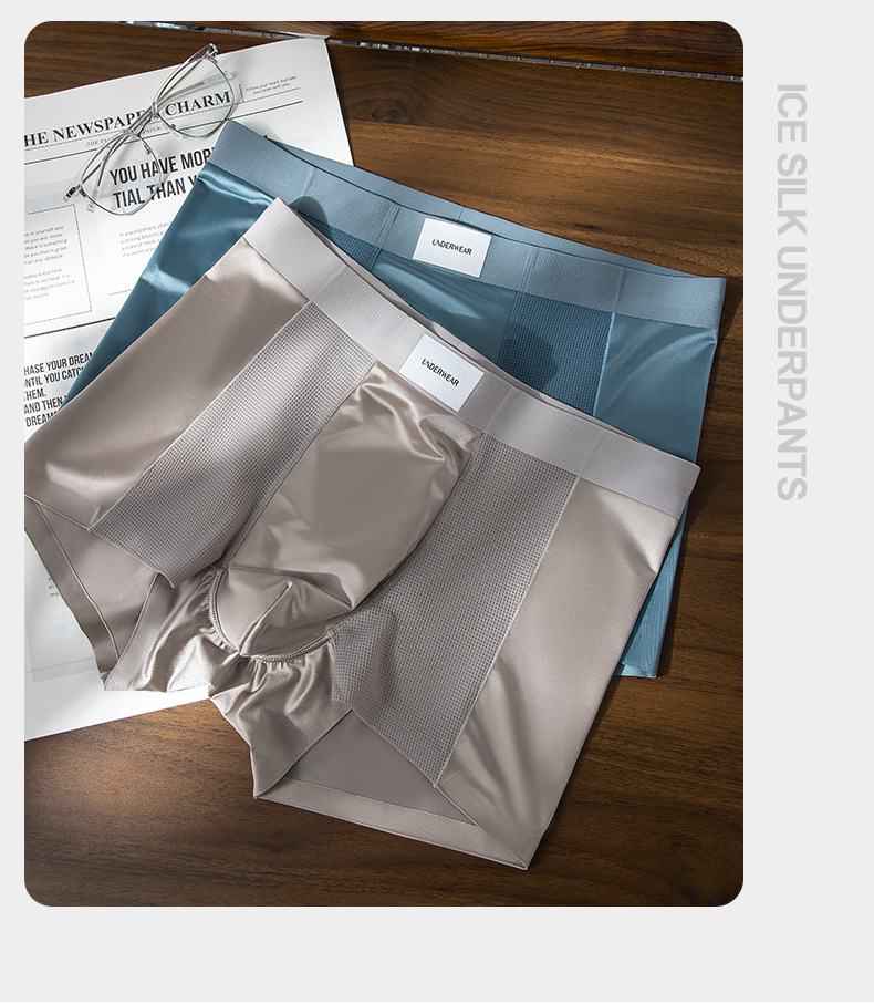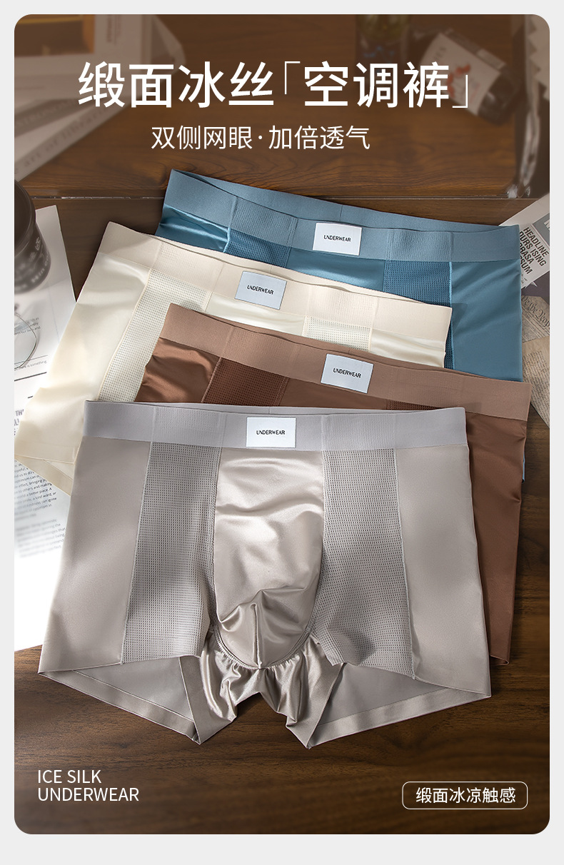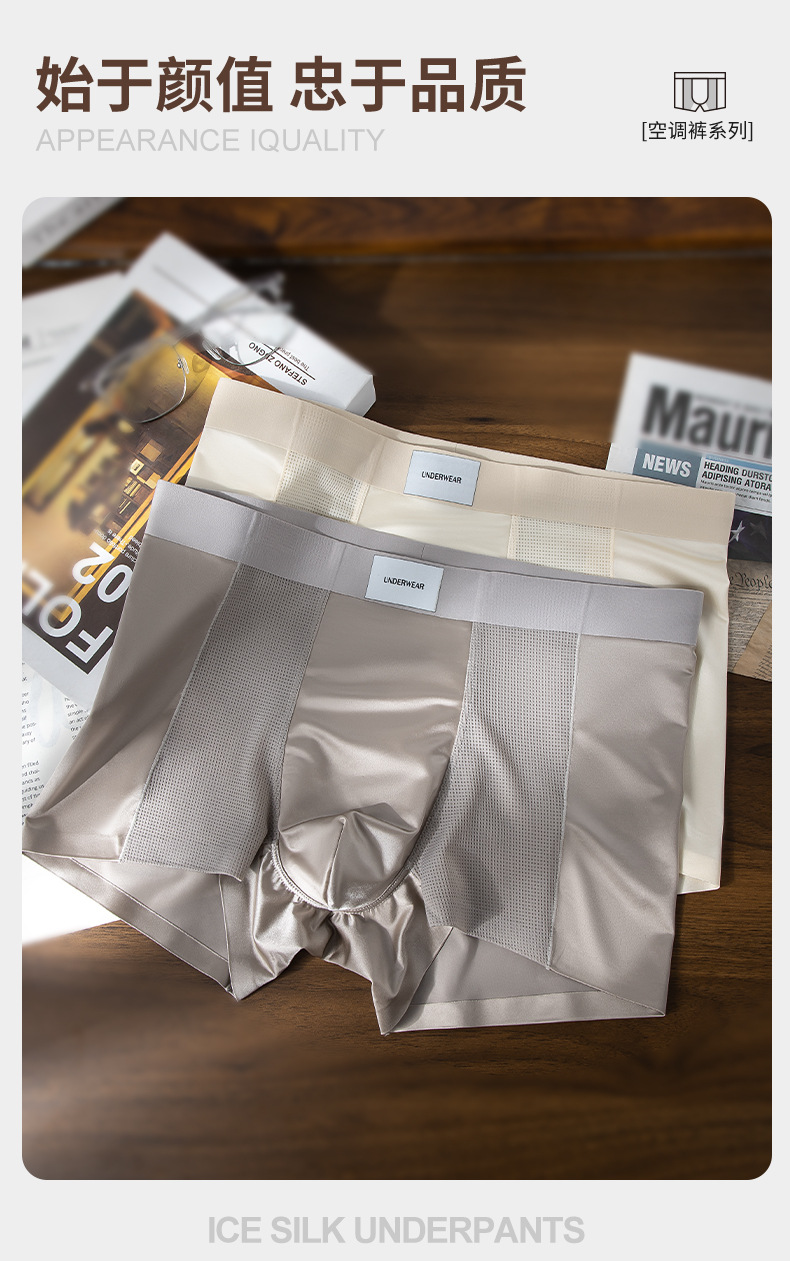 새로운 남성용 아이스 실크 속옷 대형 아이스 복서 속옷 솔리드 컬러 메쉬 이음매없는 복서 10A 통기성 반바지