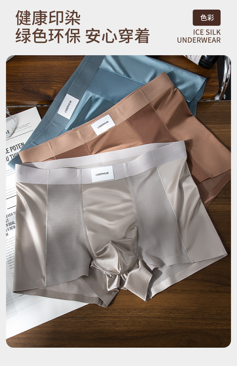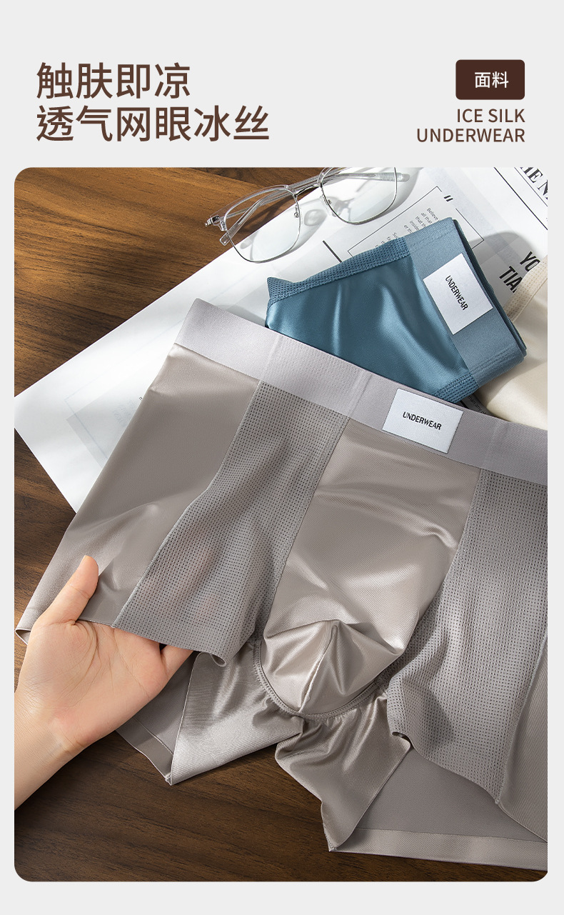 새로운 남성용 아이스 실크 속옷 대형 아이스 복서 속옷 솔리드 컬러 메쉬 이음매없는 복서 10A 통기성 반바지스토어 가기
