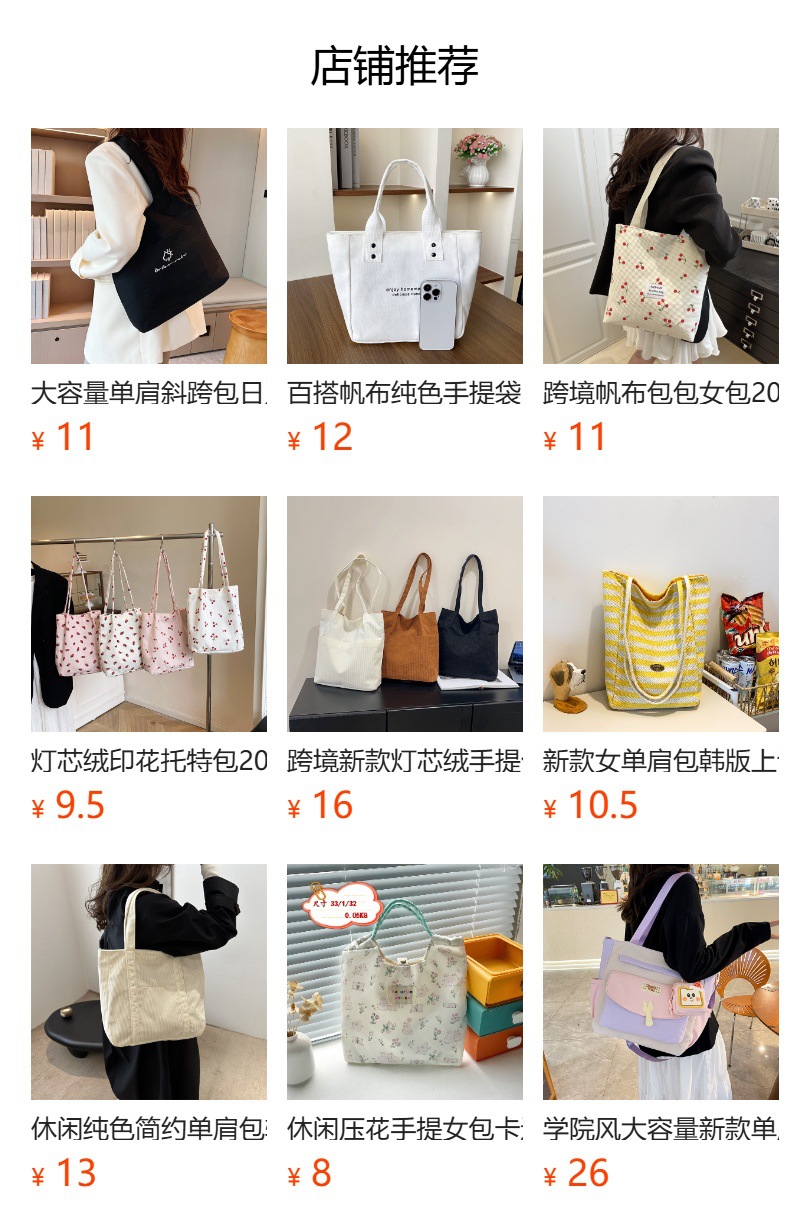 캐주얼한 여성 숄더백, 예쁜 토트백, 대용량 트렌디하고 다용도로 활용 가능한 학습용 가방, 귀여운 겨드랑이 가방스토어 가기