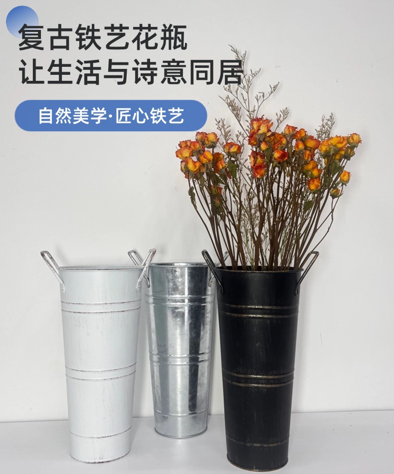 TEMU 아마존 인기상품 무광 실버 사무실 철제 통 꽃집 생화 드라이플라워 꽃병 철제 화병