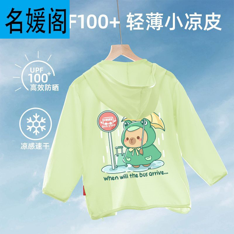 • [upf100+ 속건성 자외선 차단복] 라이트 그린/레인코트 꼬마 돌고래