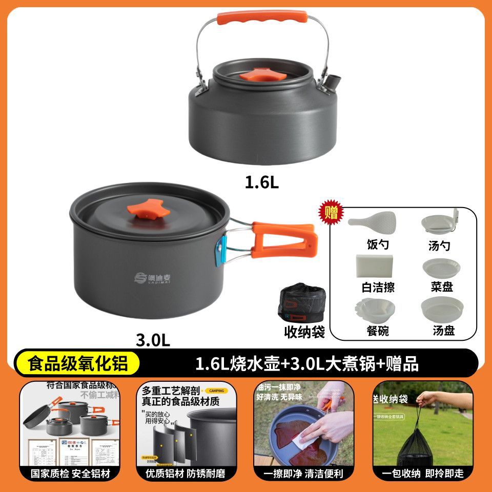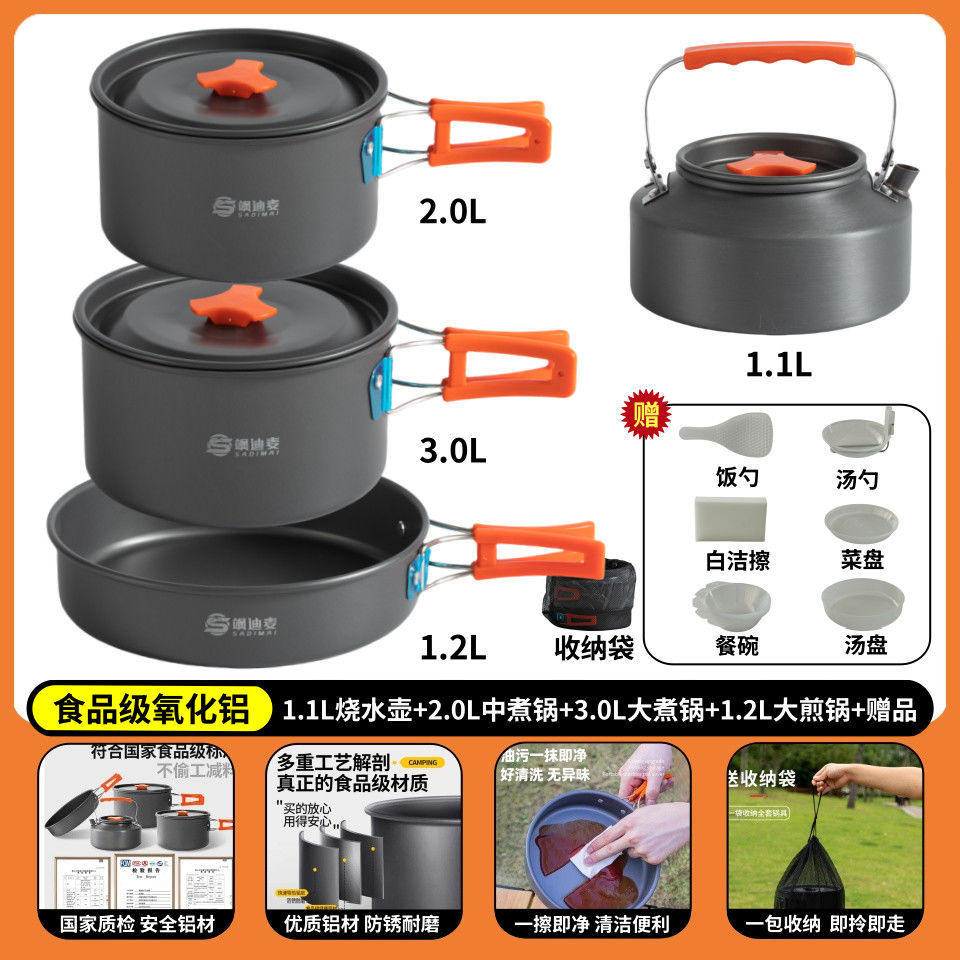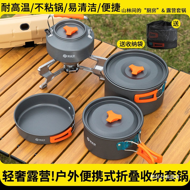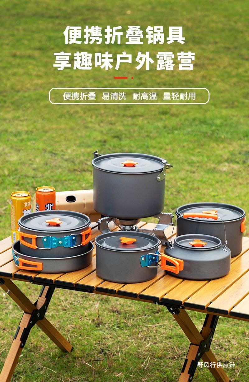 야외 캠핑 야외 접이식 냄비 세트 304 스테인레스 스틸 피크닉 주전자 장비 용품 휴대용 조리기구 크로스보더스토어 가기