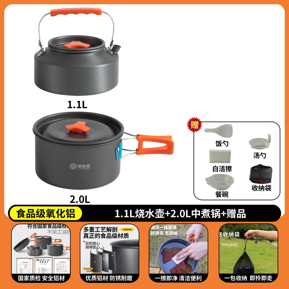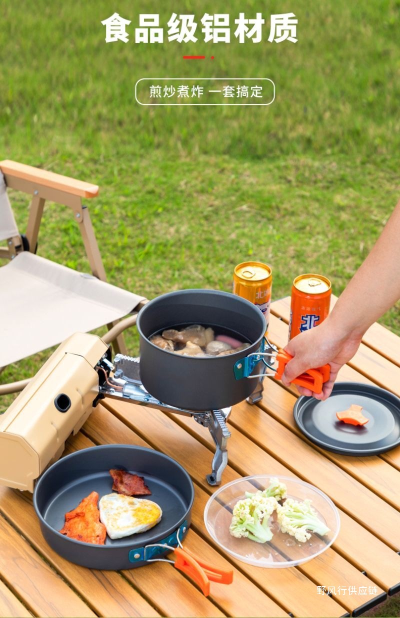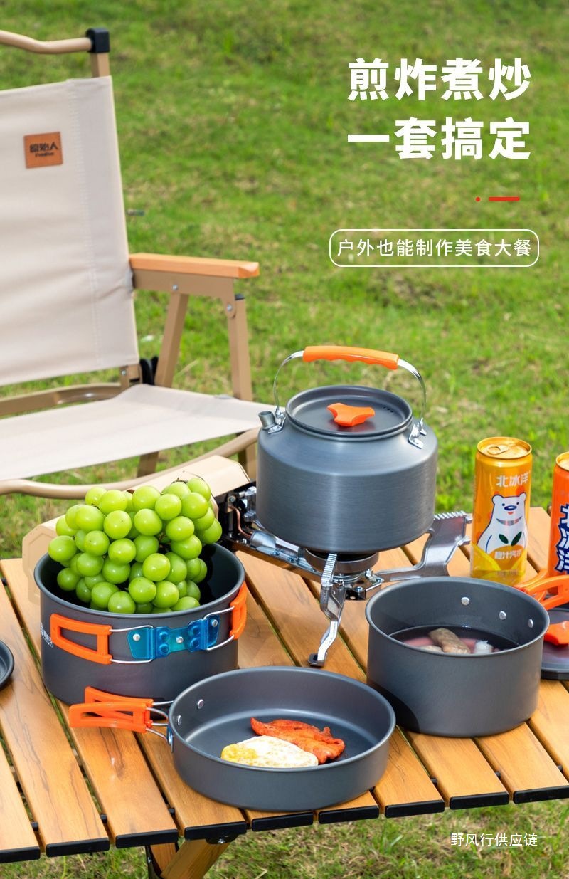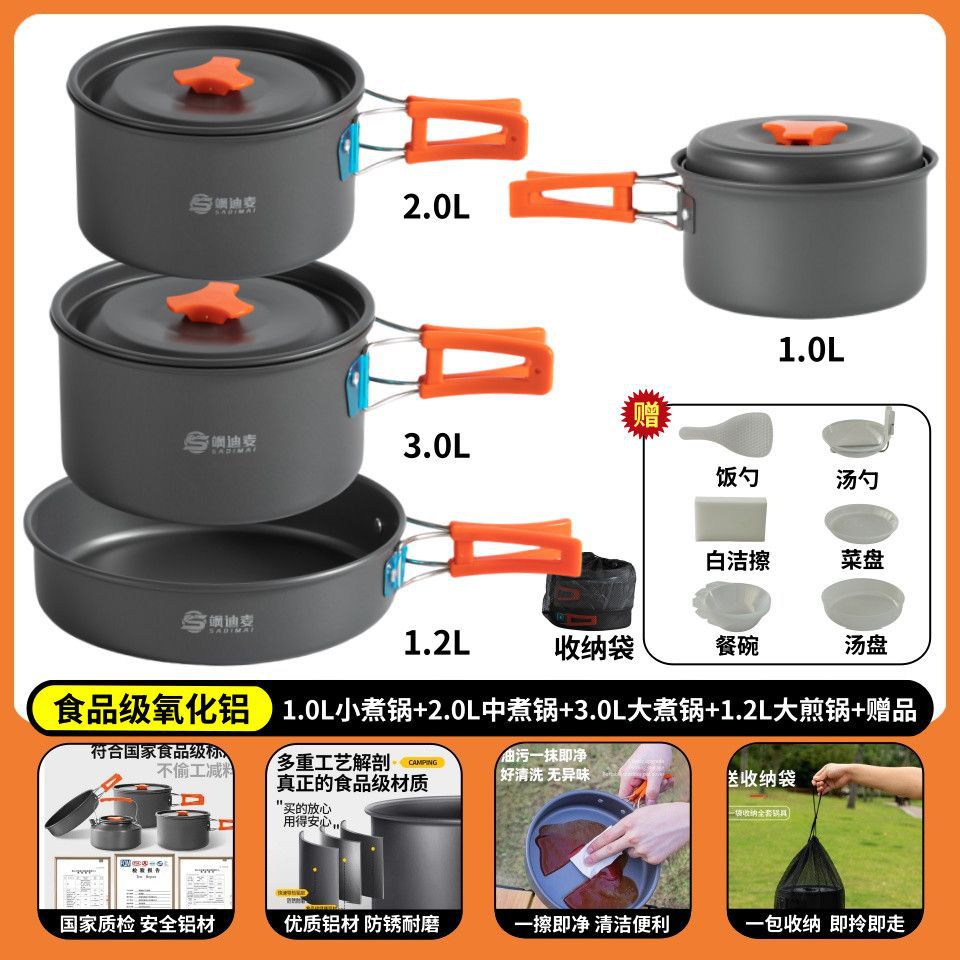 야외 캠핑 야외 접이식 냄비 세트 304 스테인레스 스틸 피크닉 주전자 장비 용품 휴대용 조리기구 크로스보더스토어 가기