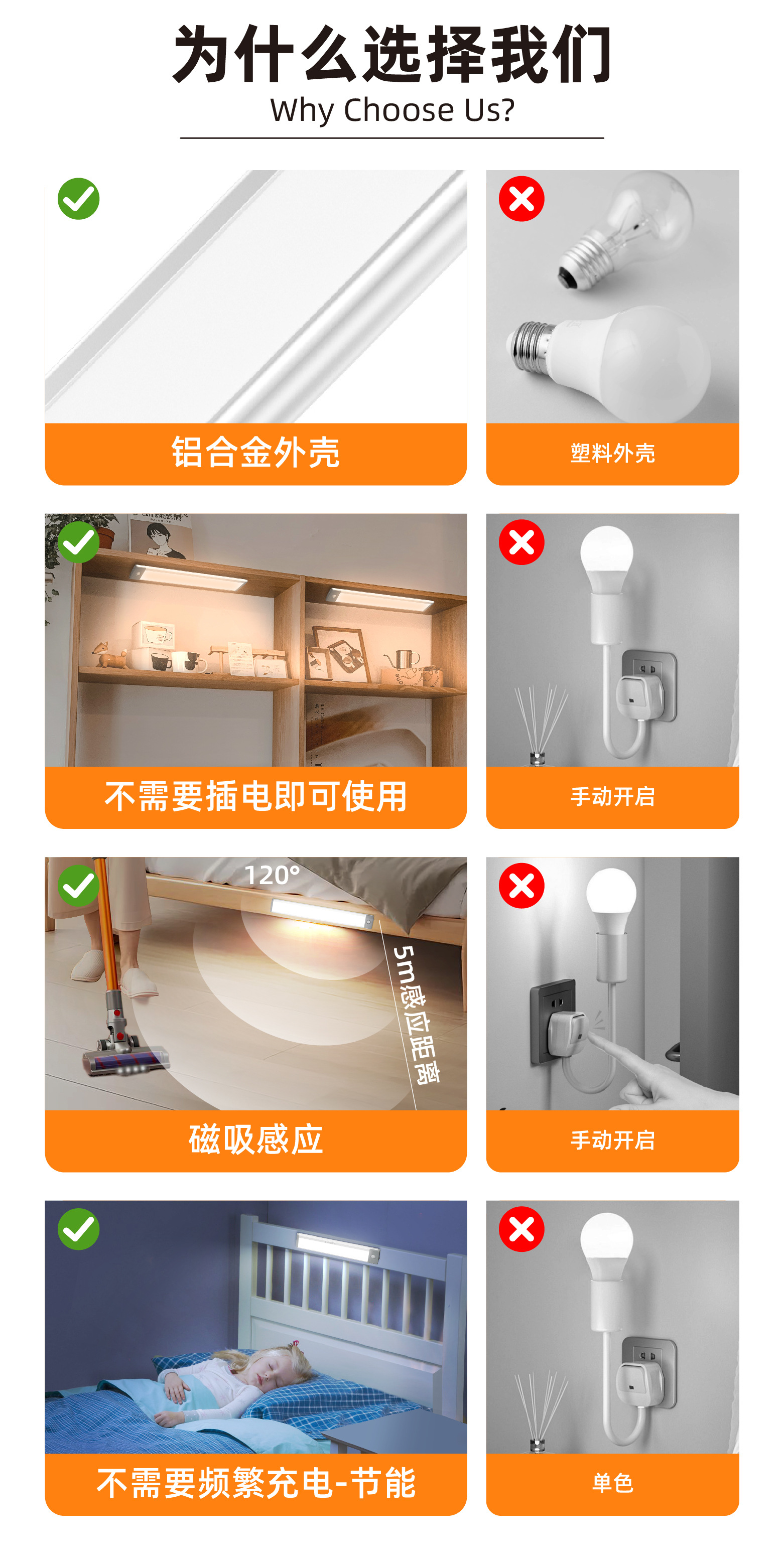 배선이 필요 없는 가정용 LED 지능형 인체 유도 자기 유도 램프, 옷장, 와인 캐비닛 및 캐비닛 램프를 위한 국경 간 전문 공급