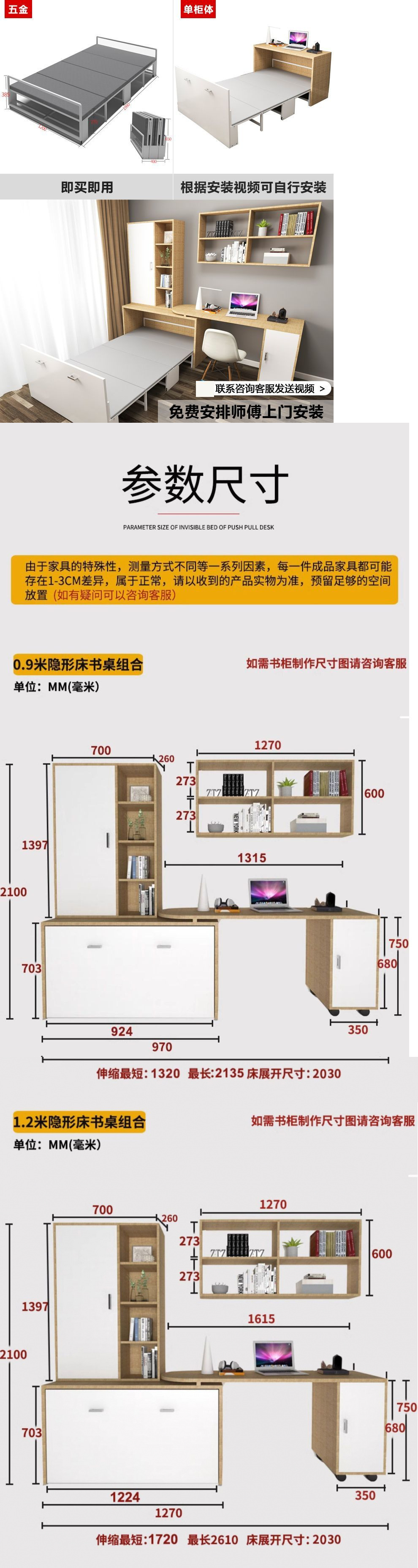 가정용 소형 아파트용 보이지 않는 접이식 침대, 캐비닛형 점심시간 다기능 책상과 옷장이 결합된 접이식 침대