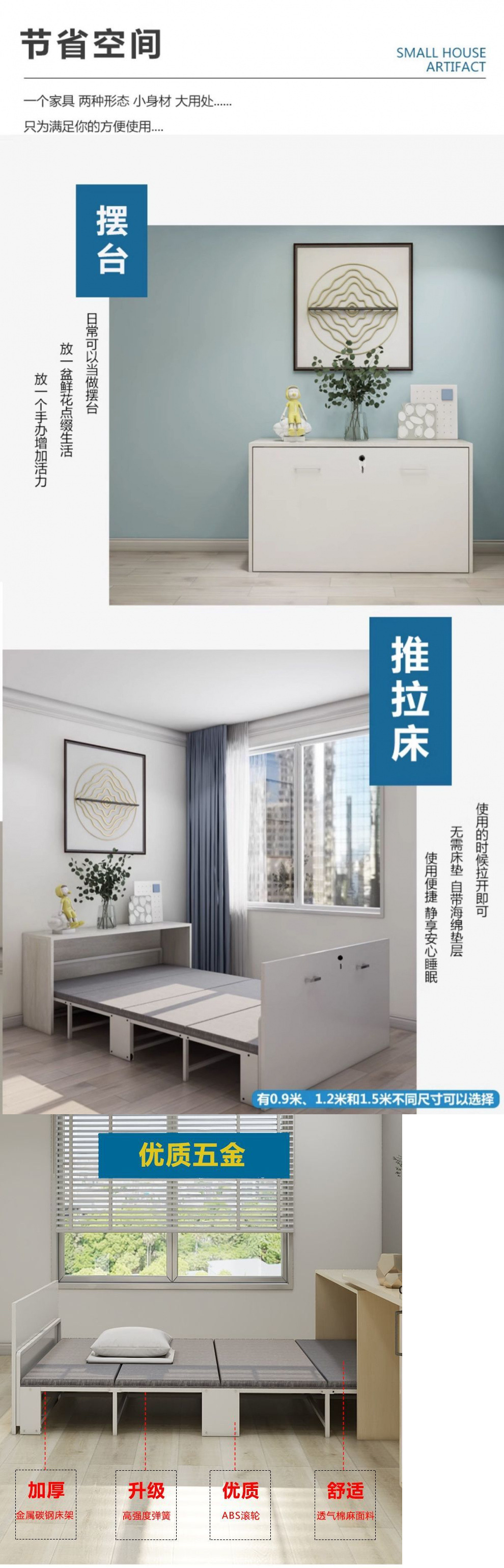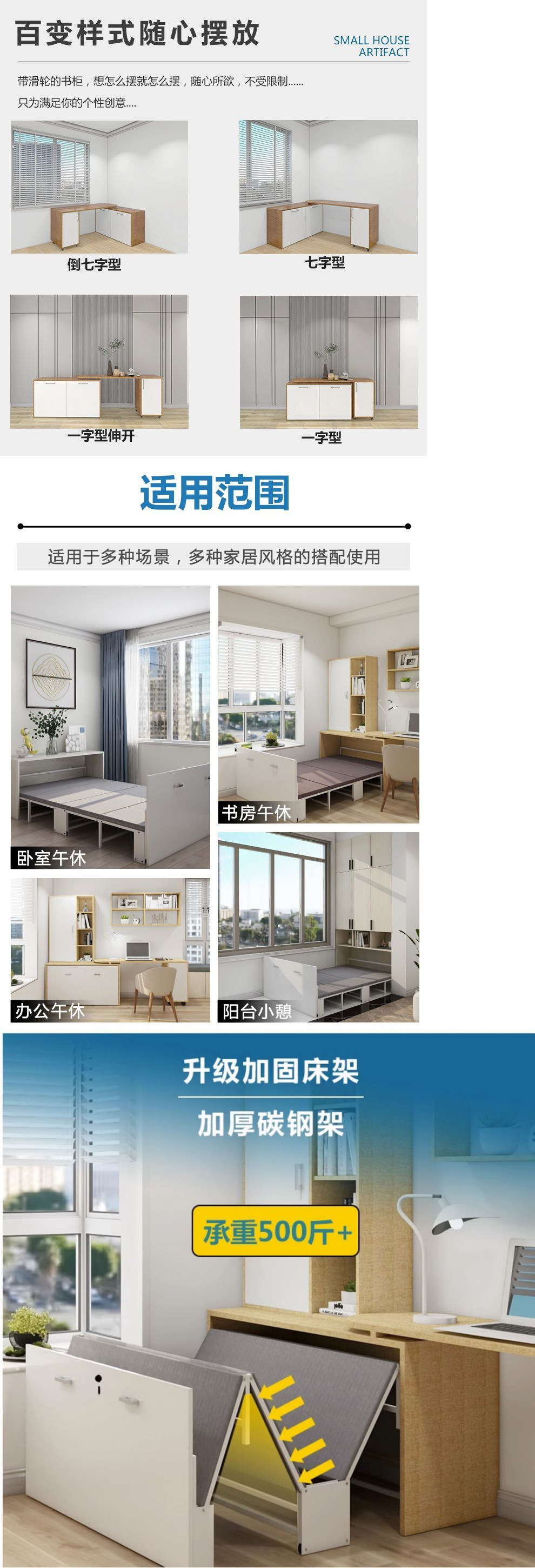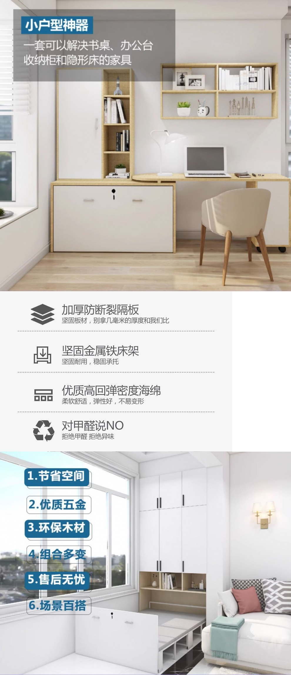 가정용 소형 아파트용 보이지 않는 접이식 침대, 캐비닛형 점심시간 다기능 책상과 옷장이 결합된 접이식 침대스토어 가기