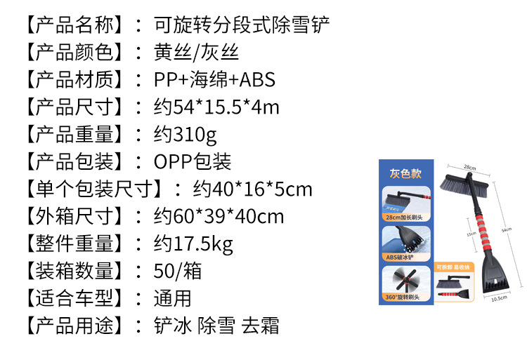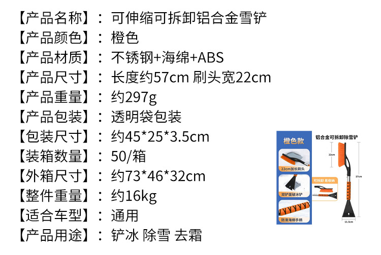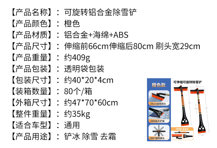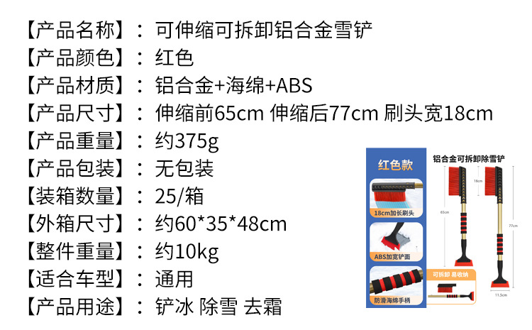 자동차 스노우 스페이드 다기능 자동차 제빙 스노우 브러시 더블 헤드 알루미늄 합금 스노우 브러시 개폐식 스노우 스페이드 도매