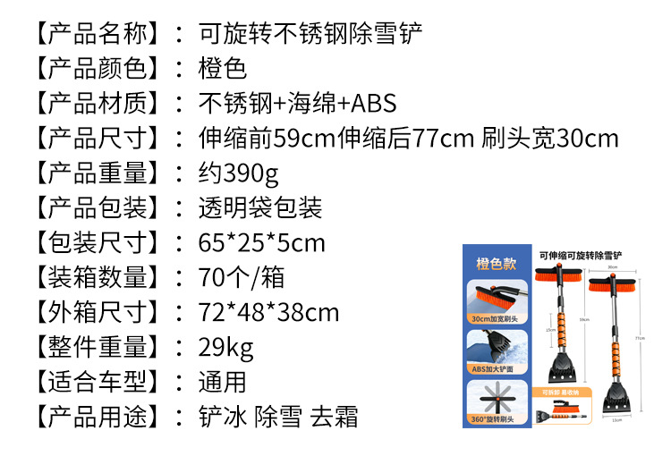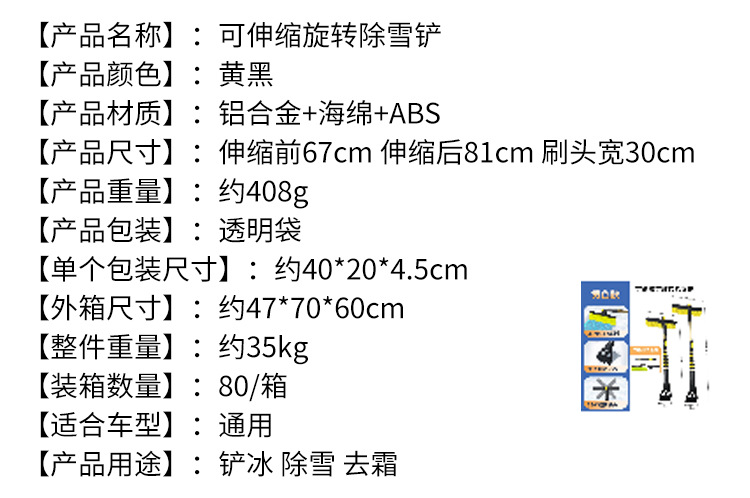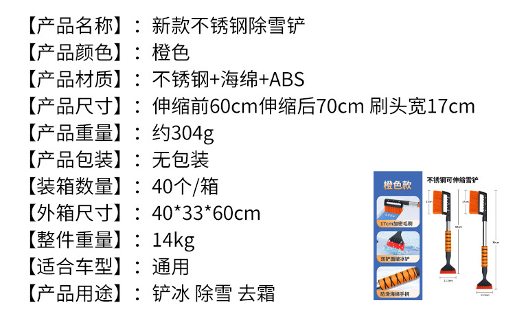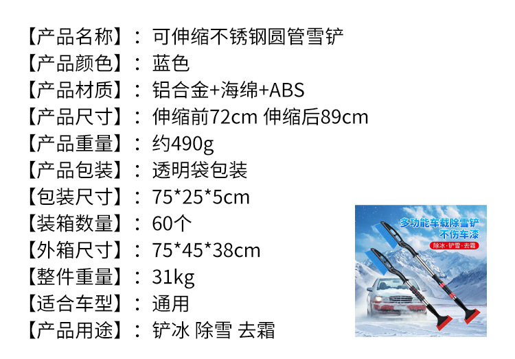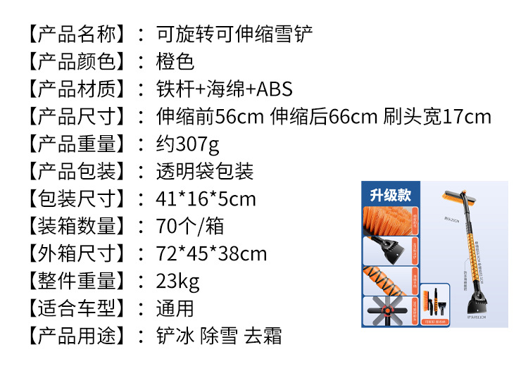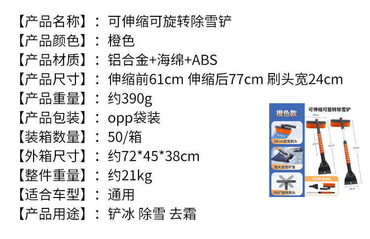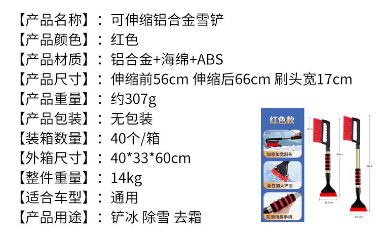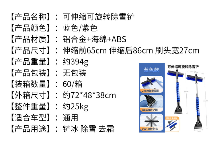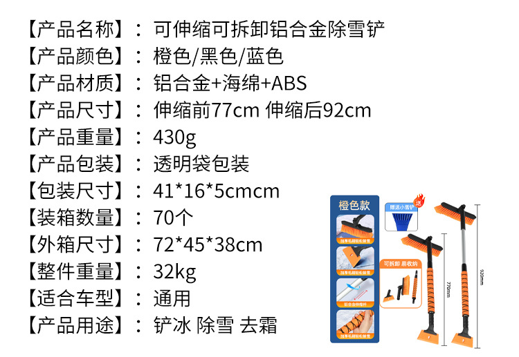 자동차 스노우 스페이드 다기능 자동차 제빙 스노우 브러시 더블 헤드 알루미늄 합금 스노우 브러시 개폐식 스노우 스페이드 도매스토어 가기