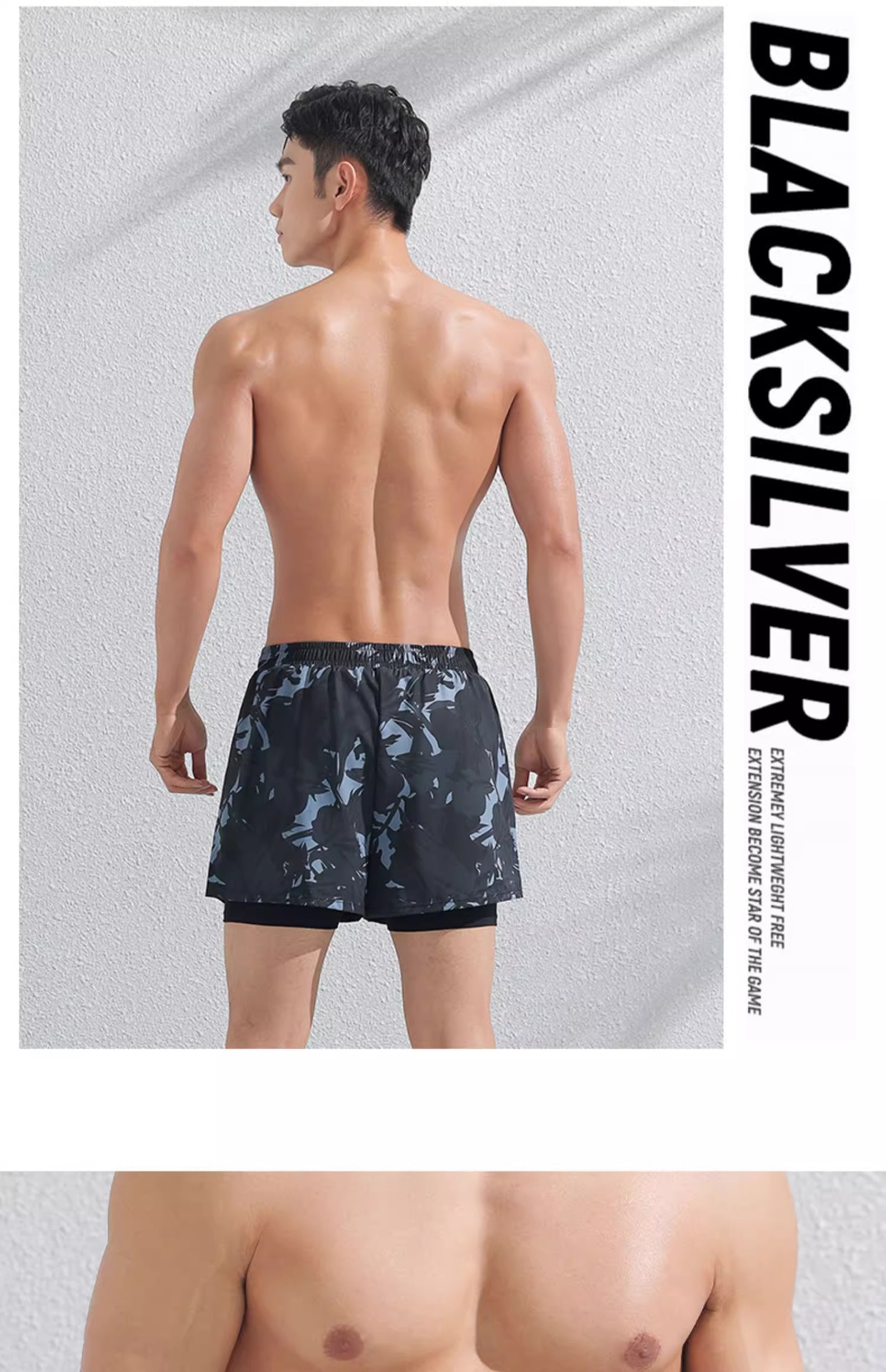 수영팬츠, 남성용 수영팬츠, 수영모, 3종세트, 속건성 스포츠, 당황스러운 방지 비치팬츠, 복서, 대형 남성용 장비