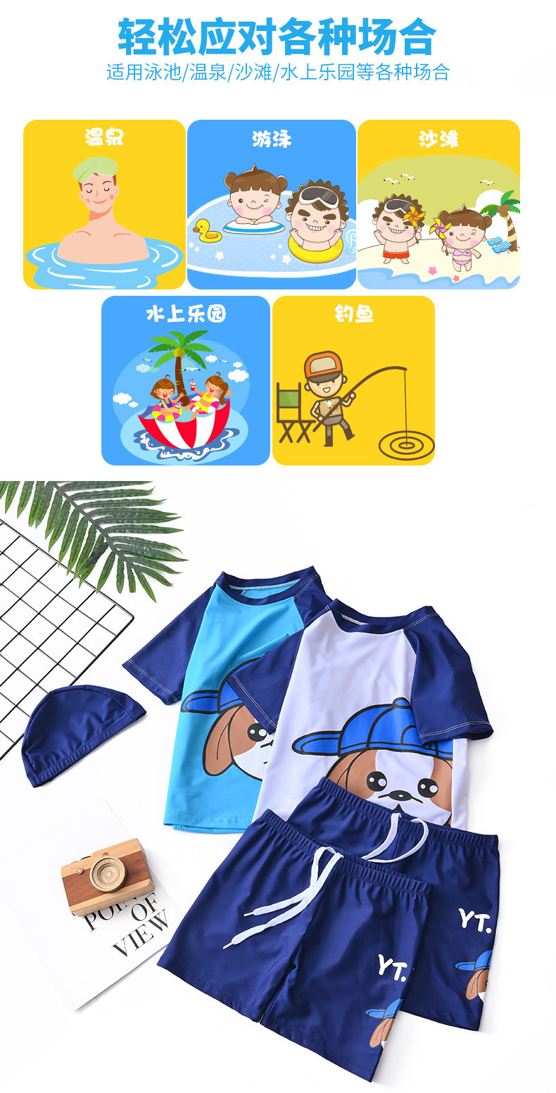 (프로모션 클리어런스) 아동 수영복 소년 소형, 중형 및 대형 아동 캐주얼 웨이딩 수영복 만화 온천 해변