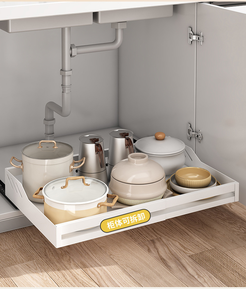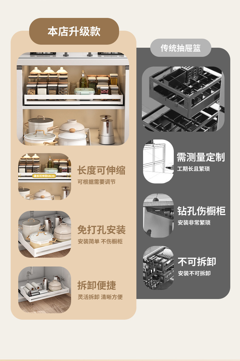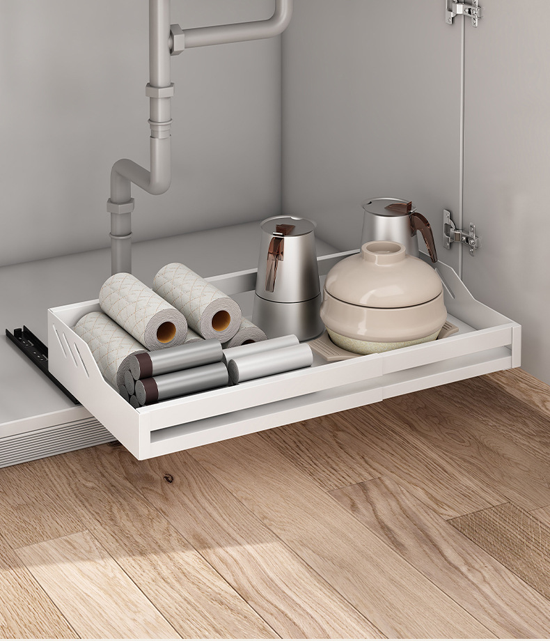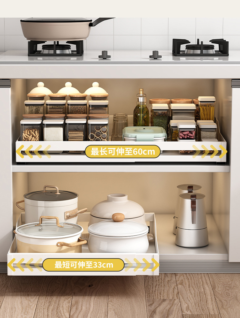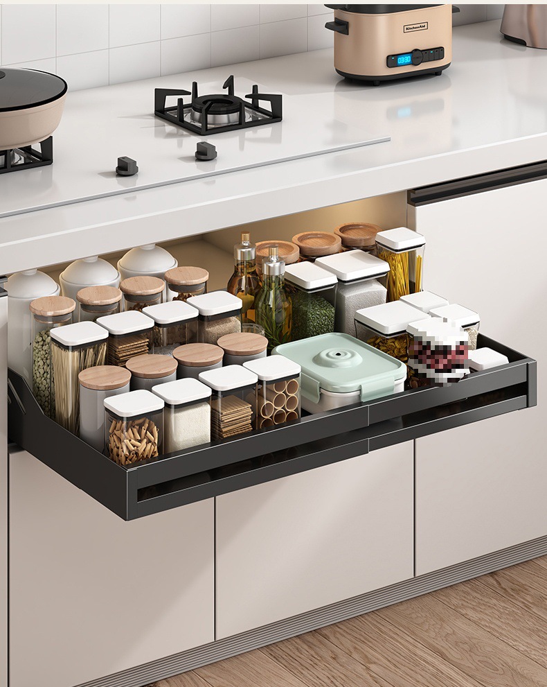 B" 주방 캐비닛 서랍형 수납선반, 접이식 조미료 수납선반, 풀아웃 바구니 수납함