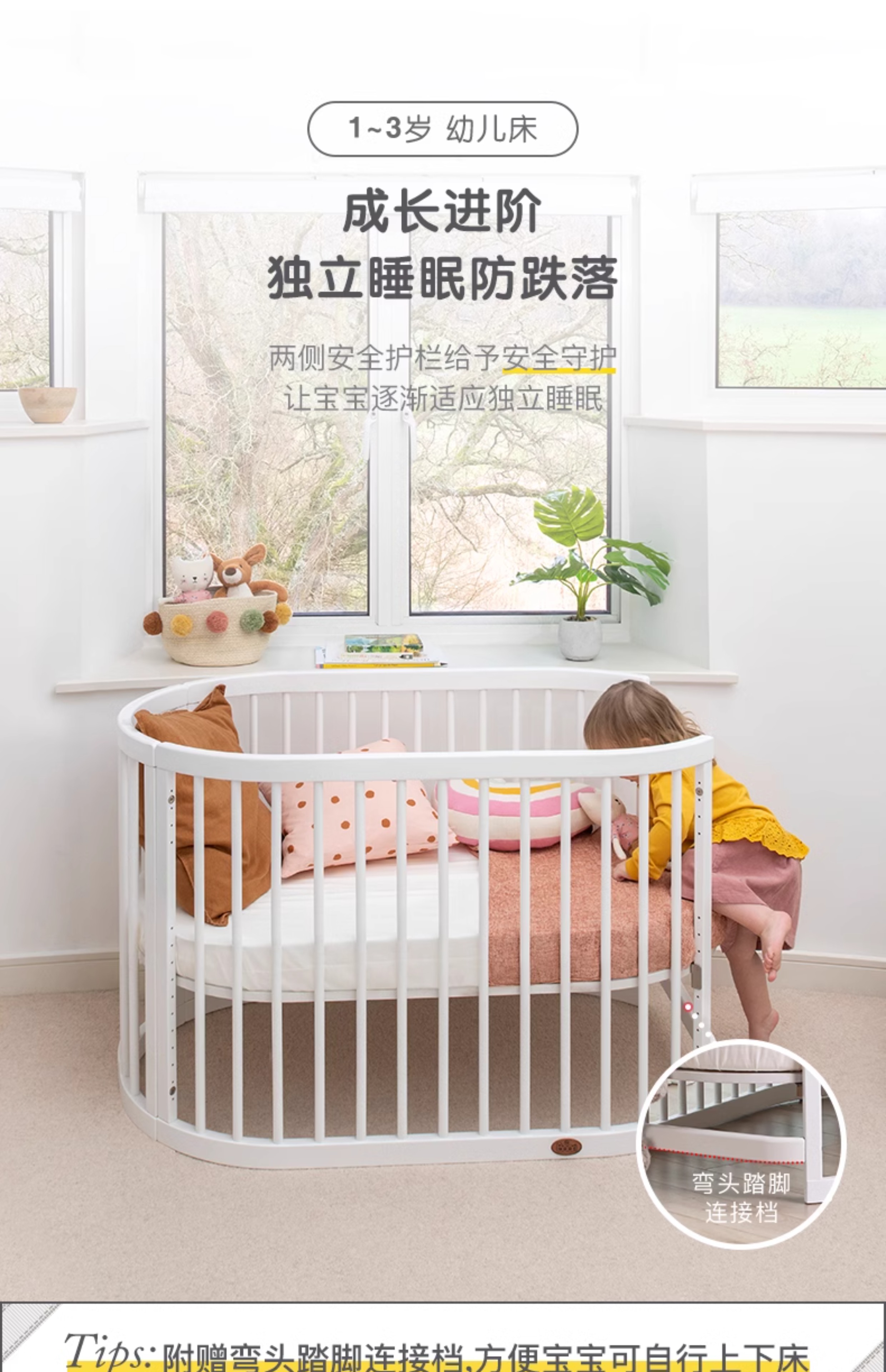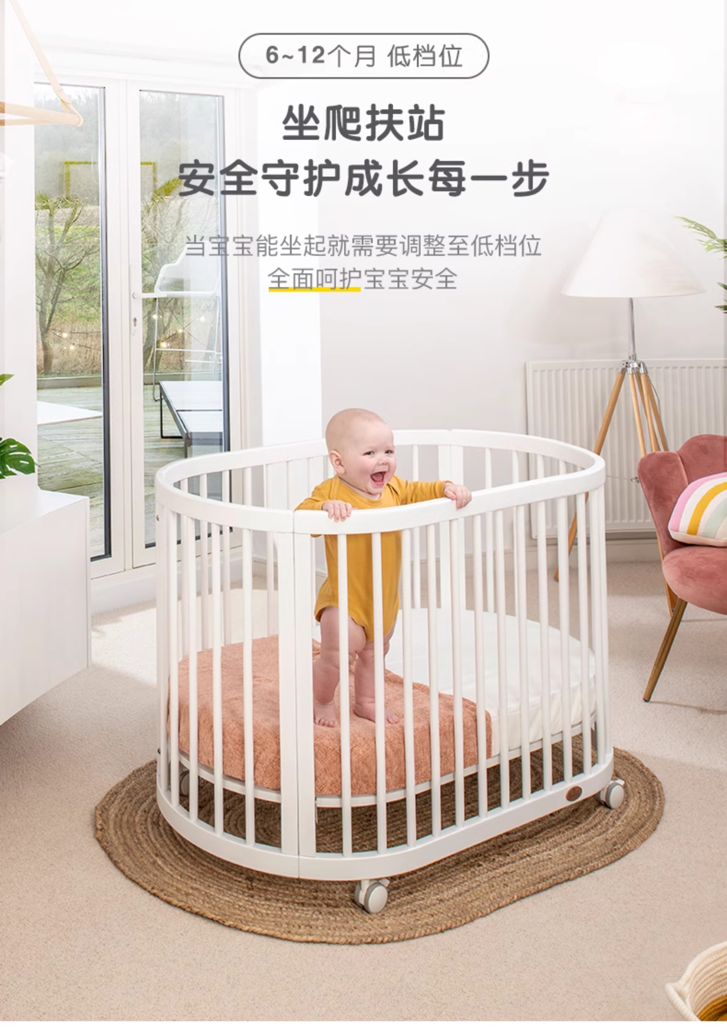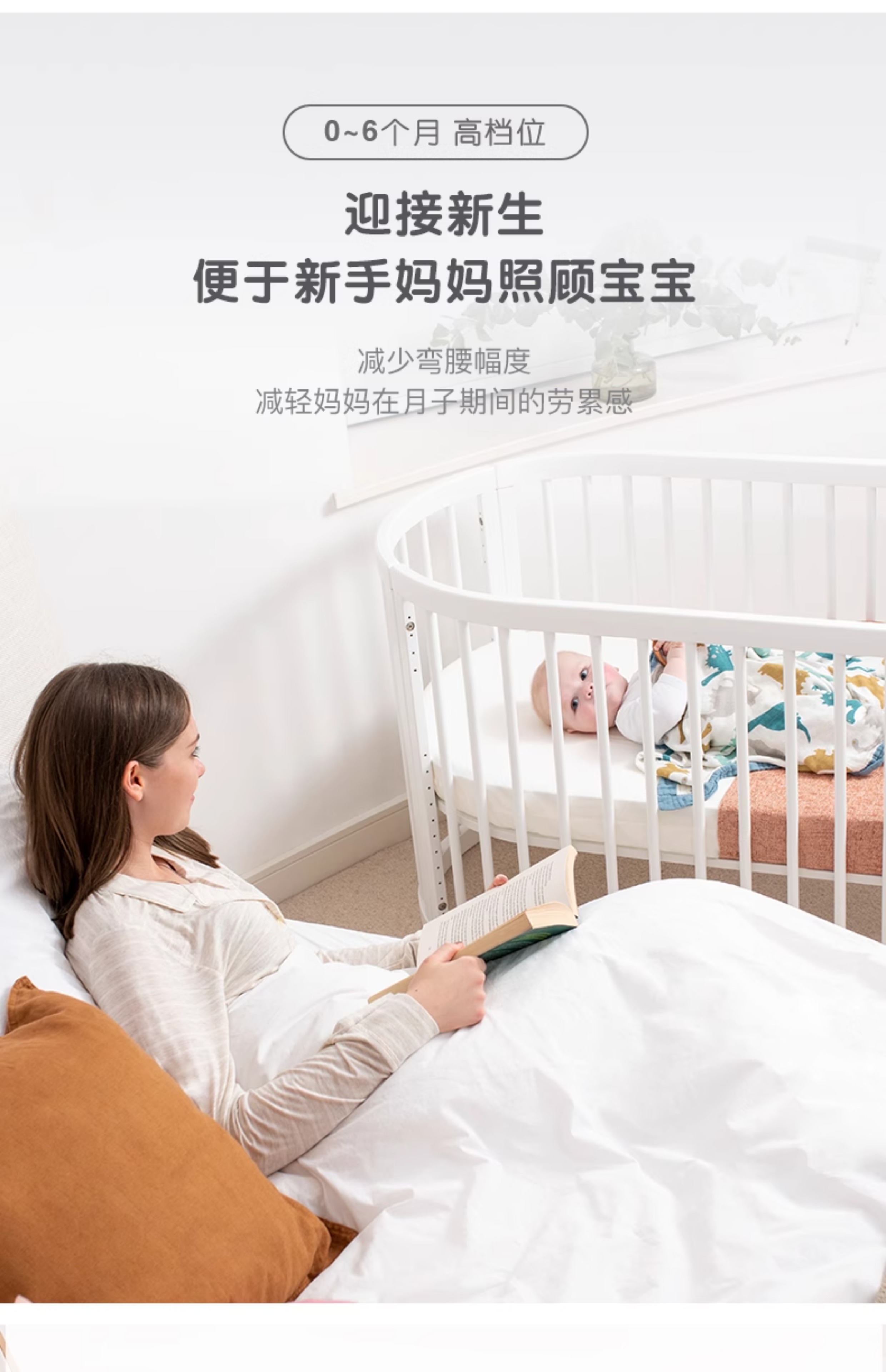 ✅ Oasis 수입 단단한 나무 유아용 침대 다기능 이동식 원형 침대 다단 접합 침대 신생아스토어 가기