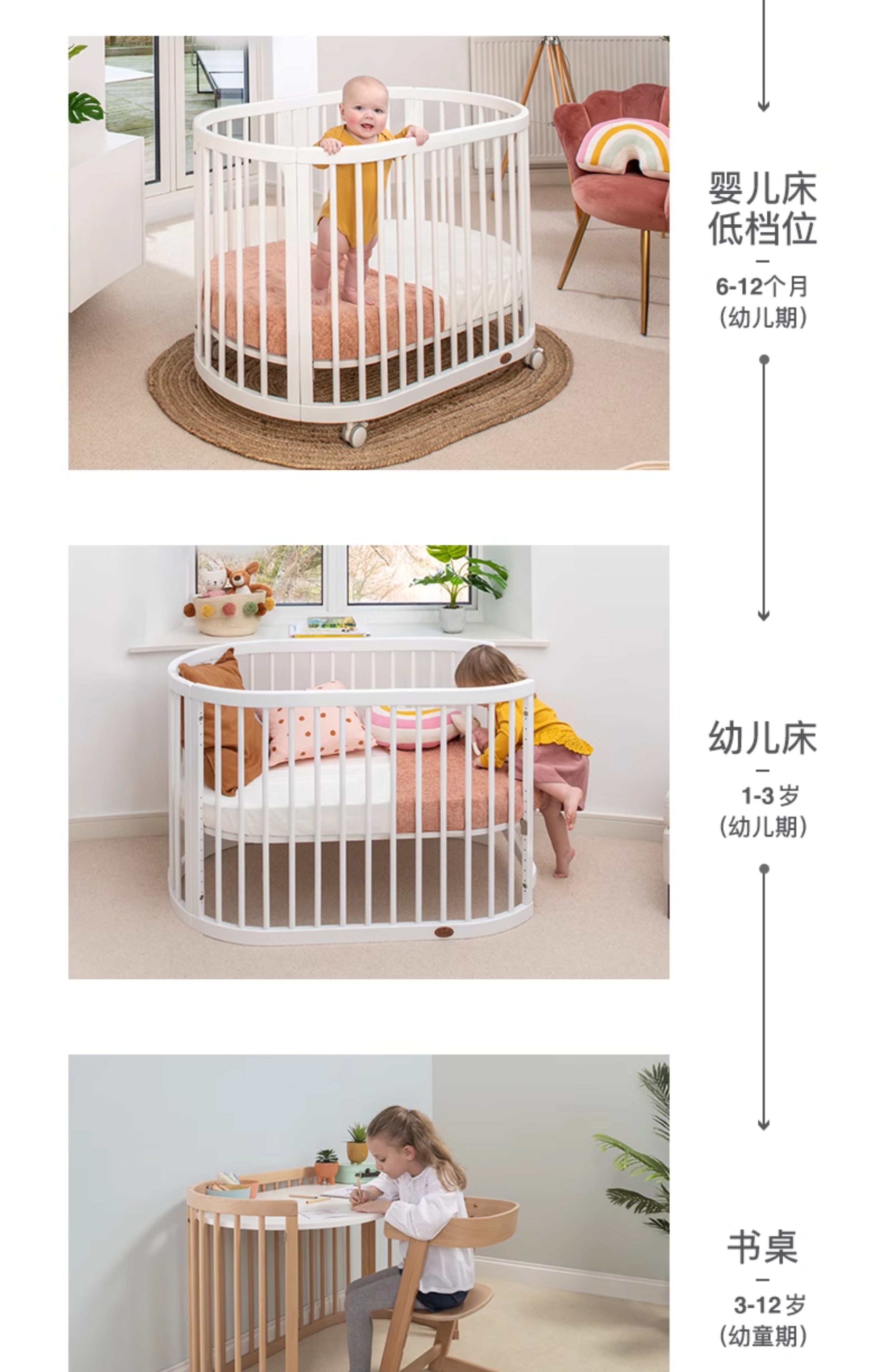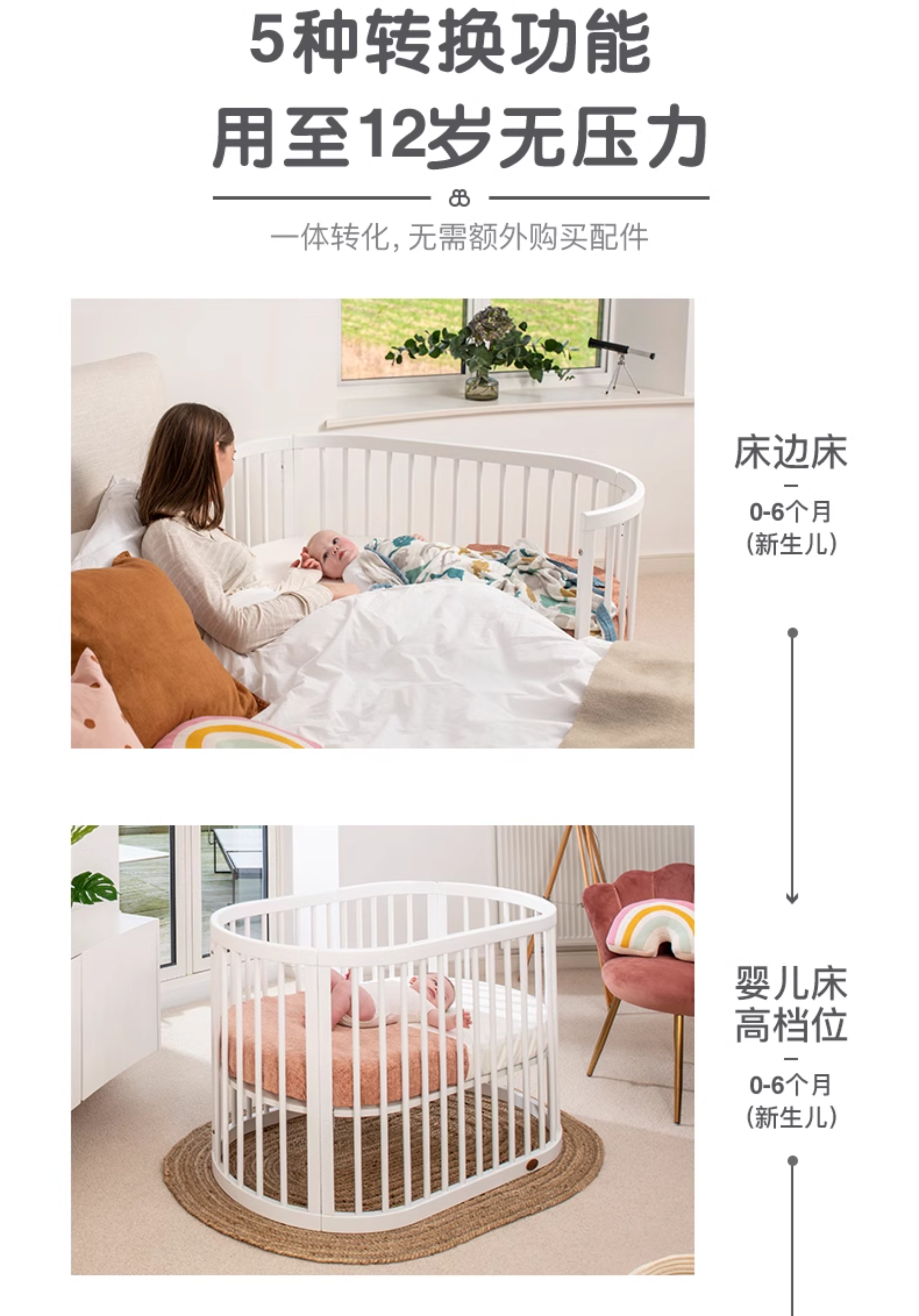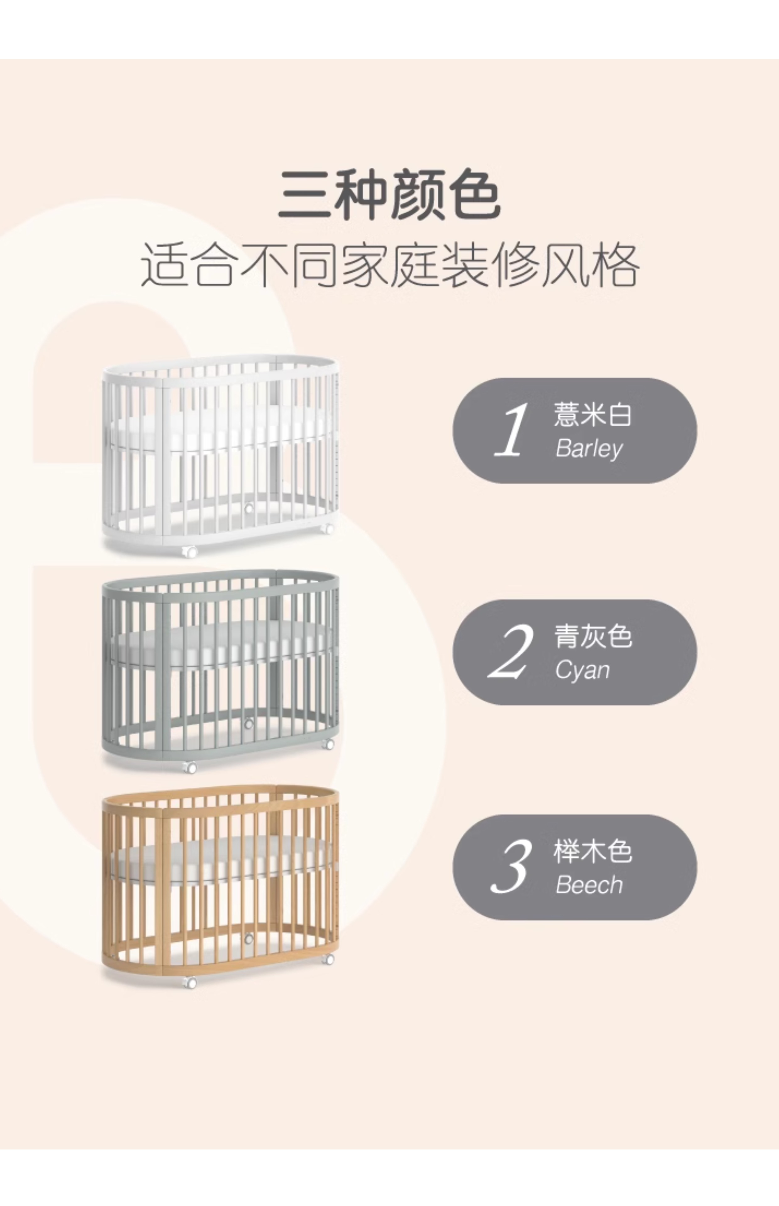 ✅ Oasis 수입 단단한 나무 유아용 침대 다기능 이동식 원형 침대 다단 접합 침대 신생아스토어 가기