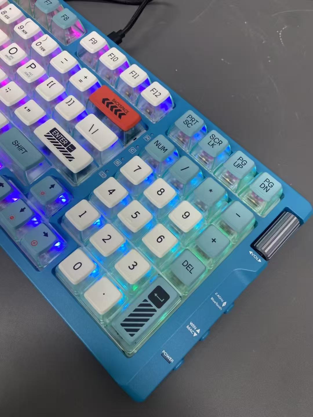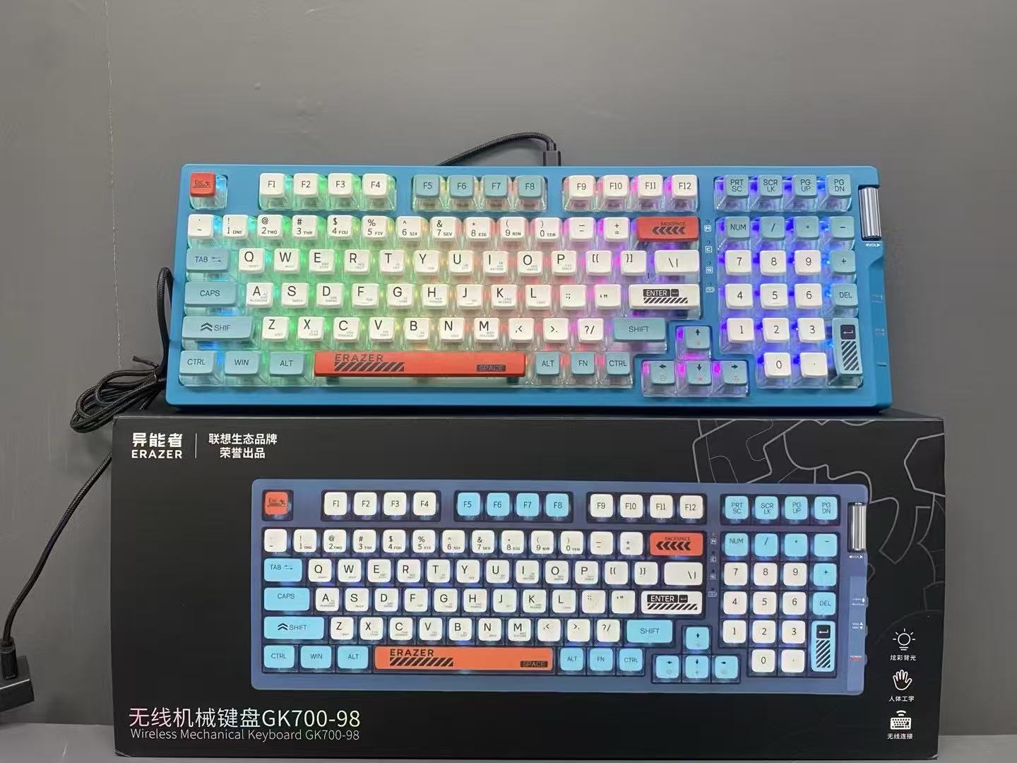 이능자 GK700RGB 유선 무선 블루투스 3모드 핫스왑 가능 퍼플축 e스포츠 기계식 키보드(치킨 전용)스토어 가기
