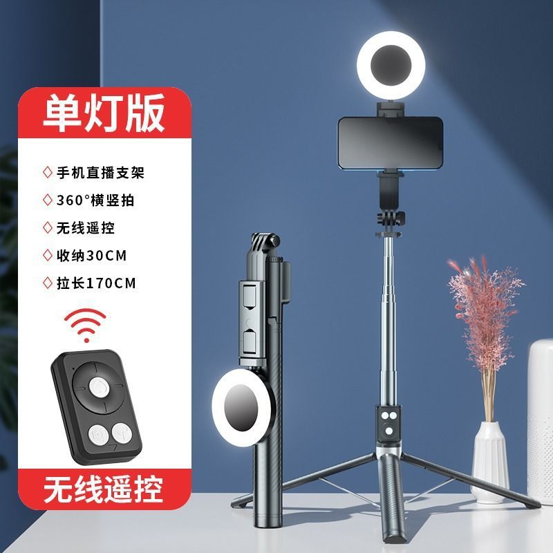 • 싱글 헤드라이트 모델 블랙 [1개의 스테인레스 스틸 튜브 일체형 셀카봉 + 충전 다기능 블루투스 리모컨 + 대형 원형 필라이트 1개]