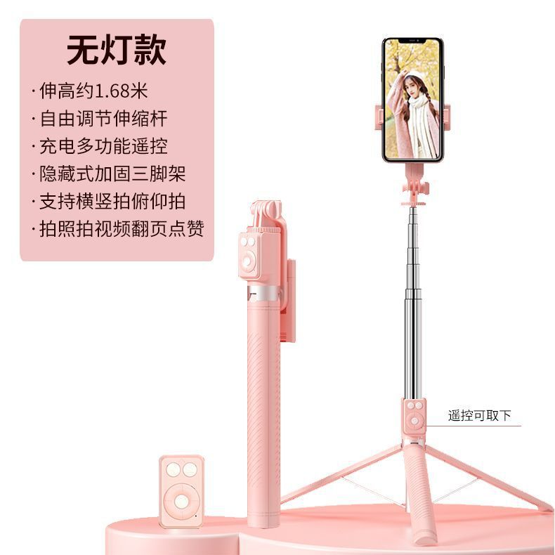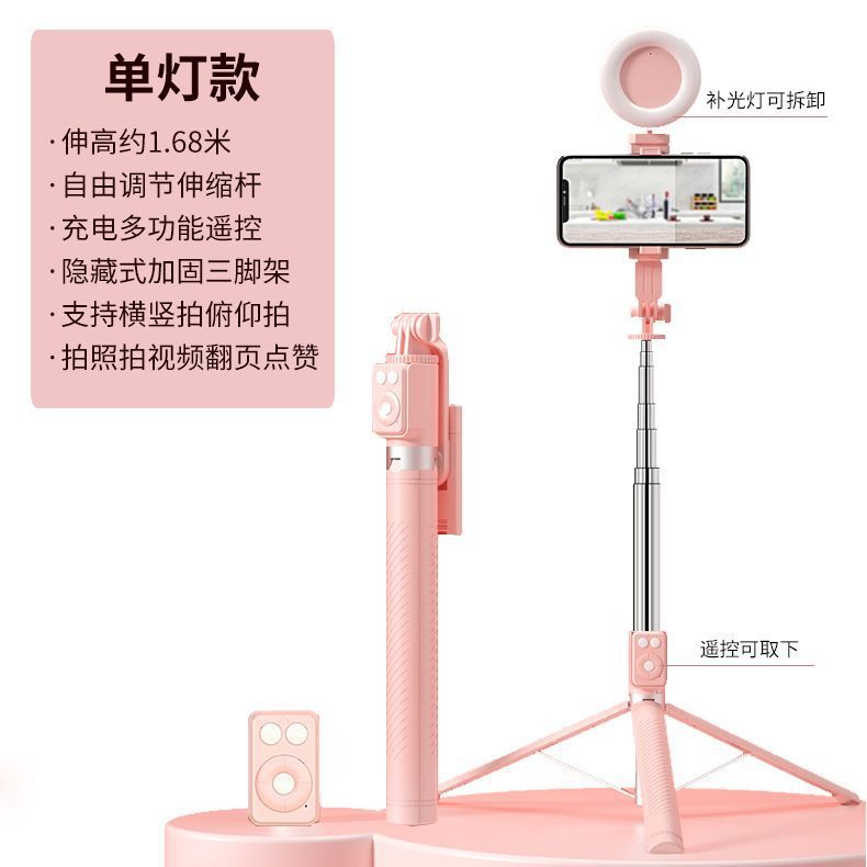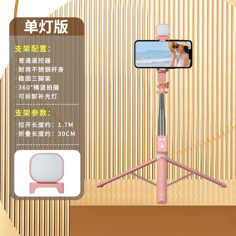 • 싱글 헤드라이트 모델 핑크 [1.7m 스테인리스 스틸 튜브 일체형 셀카봉 + 충전 다기능 블루투스 리모컨 + 대형 원형 필라이트 1개]