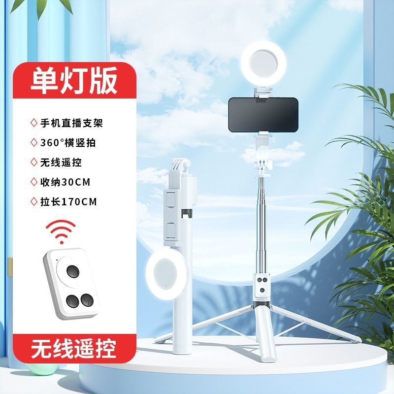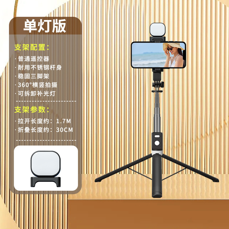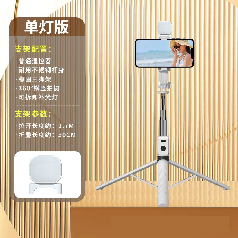 • 단일 소형 램프 모델 흰색 [1.7m 스테인레스 스틸 튜브 통합 셀카봉 + 충전 다기능 블루투스 리모컨 + 1 작은 사각형 채우기 조명]