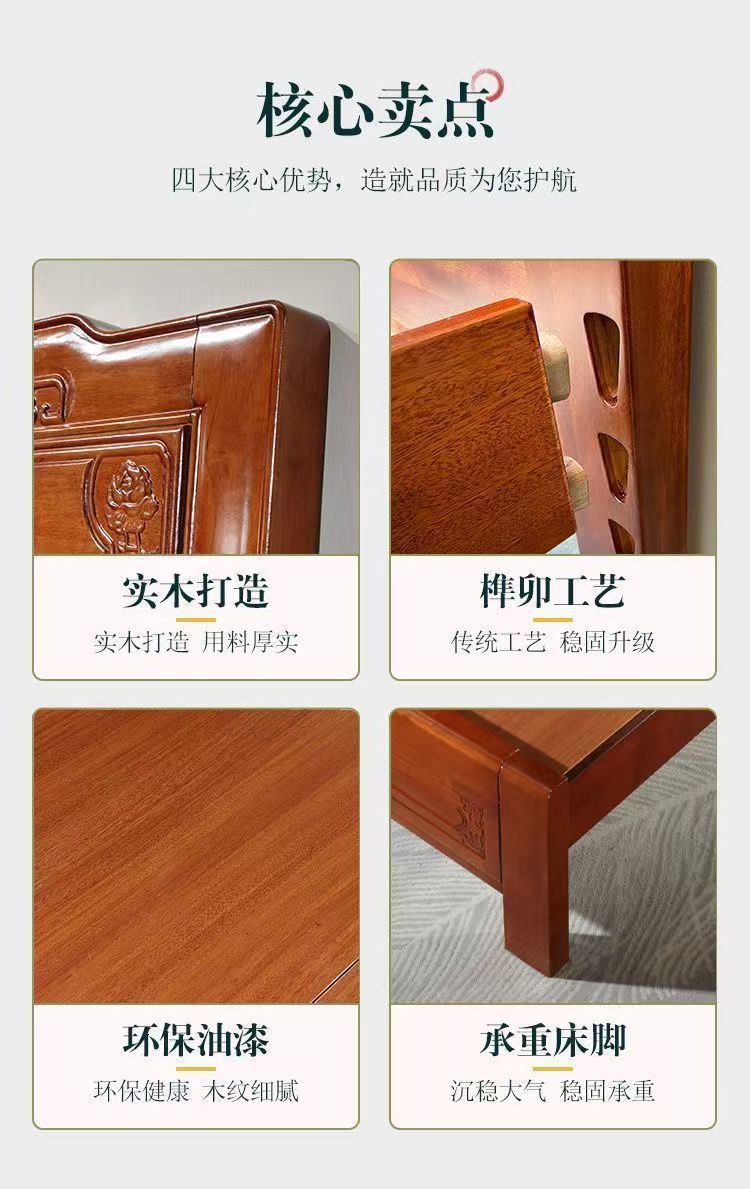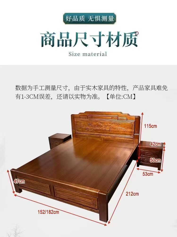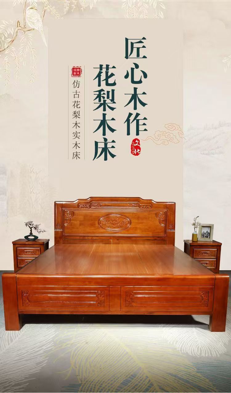 원목 침대, 원목 두껍고 굵은 클래식 침대, 로즈우드 명청 시대 골동품 중국식 침대, 침실 풀 모따기 더블 침대스토어 가기
