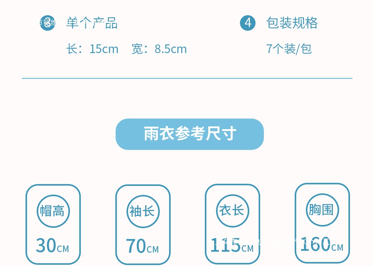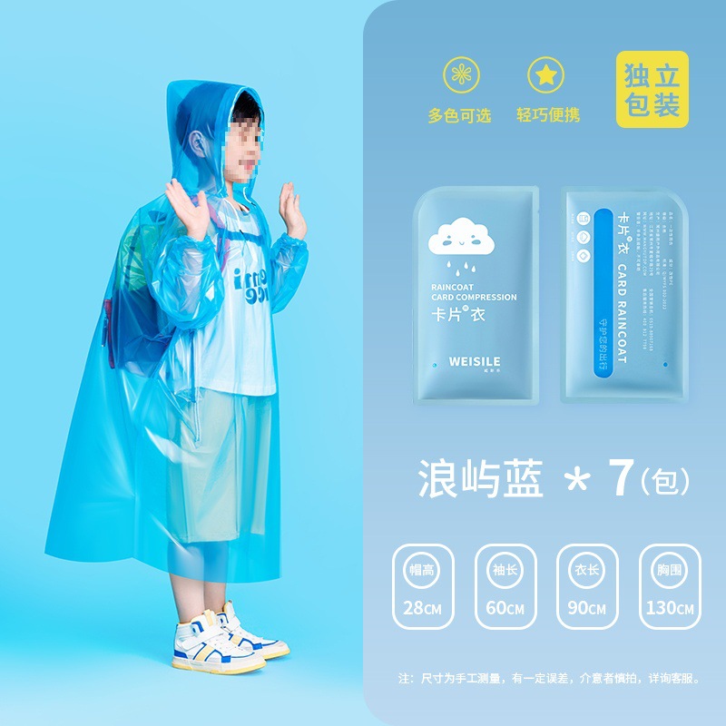 • 어린이용 일회용 비옷, 투명 흰색, 7개입 [독립카드 포장]