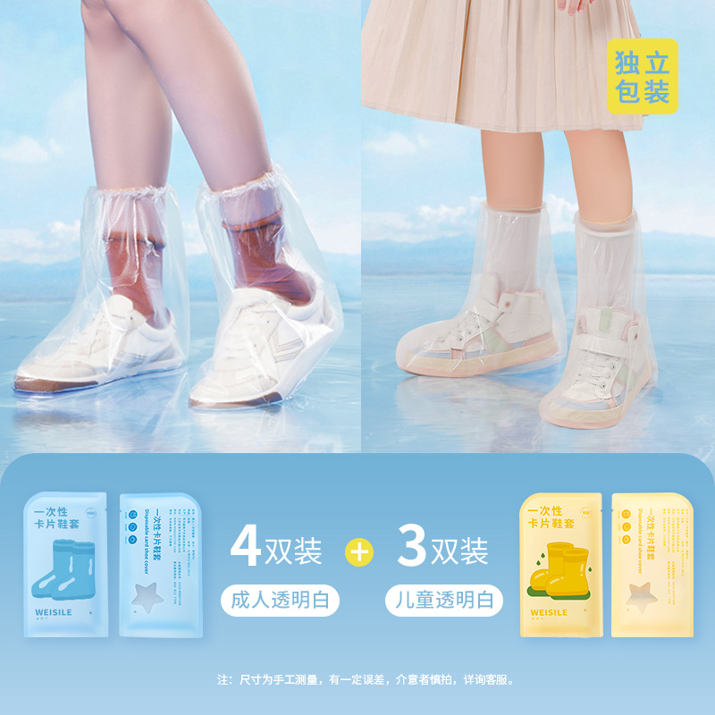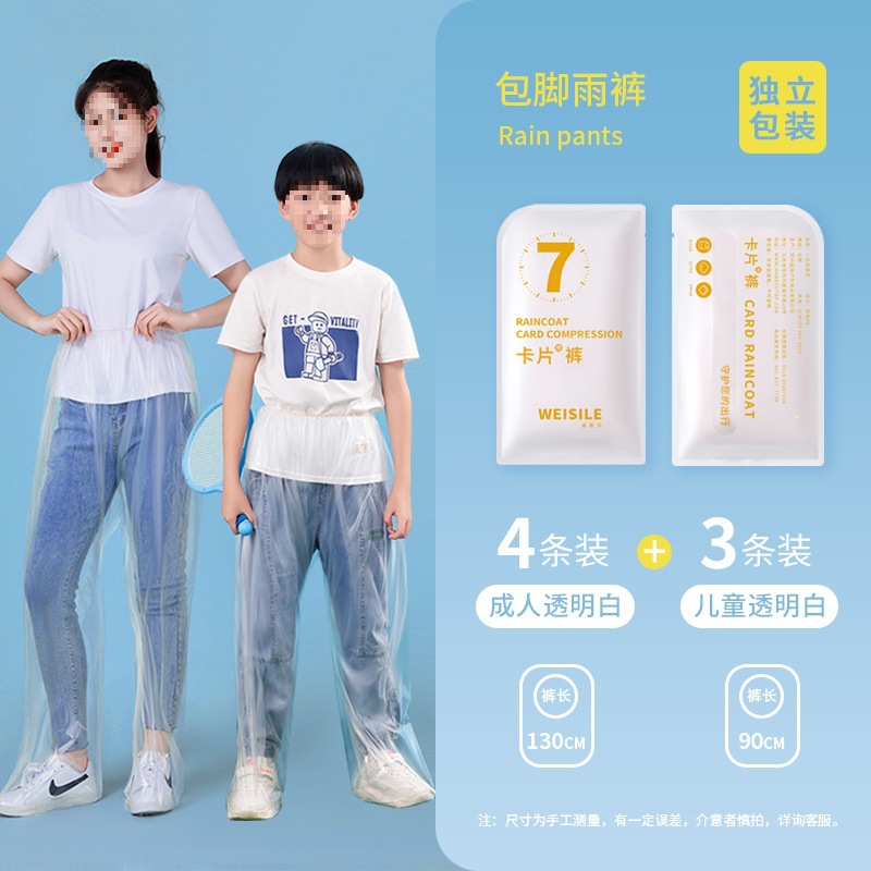 • 일회용 레인팬츠, 투명 흰색, 성인용 4켤레 + 어린이용 3켤레 [독립카드 포장]