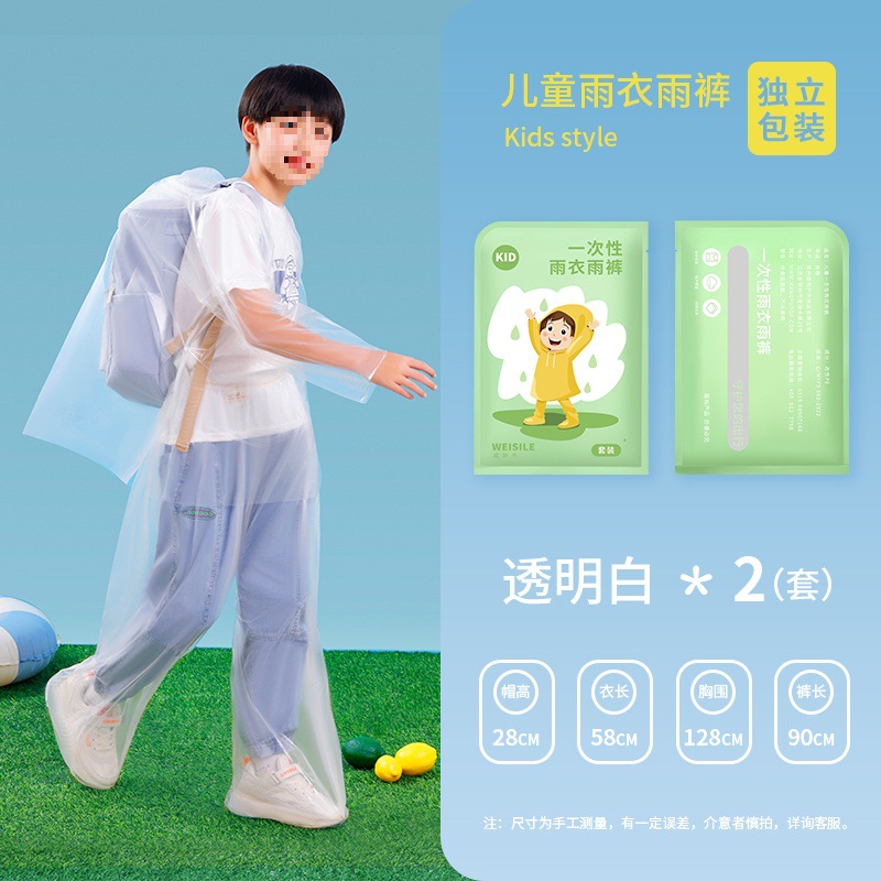 • 어린이용 일회용 비옷과 비옷, 투명 흰색, 2세트(카드 포장)