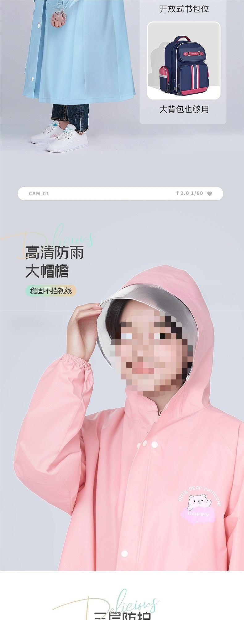 • 하늘색 [업그레이드된 지퍼 스타일] [두꺼워짐 + 큰 가방 슬롯 + 큰 챙]