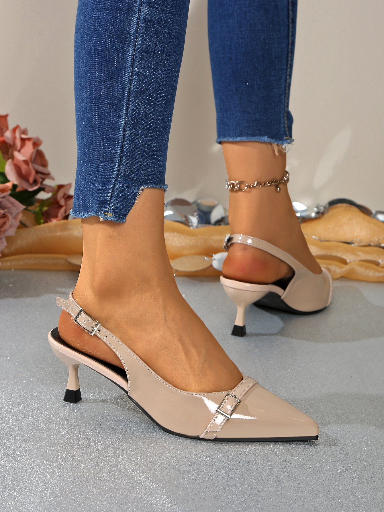 섹시한 대형 대외 무역 포인티드 미드 힐 샌들 2025 여름 새로운 스타일 스틸레토 벨트 버클 유럽과 미국의 여성용 발가락 샌들