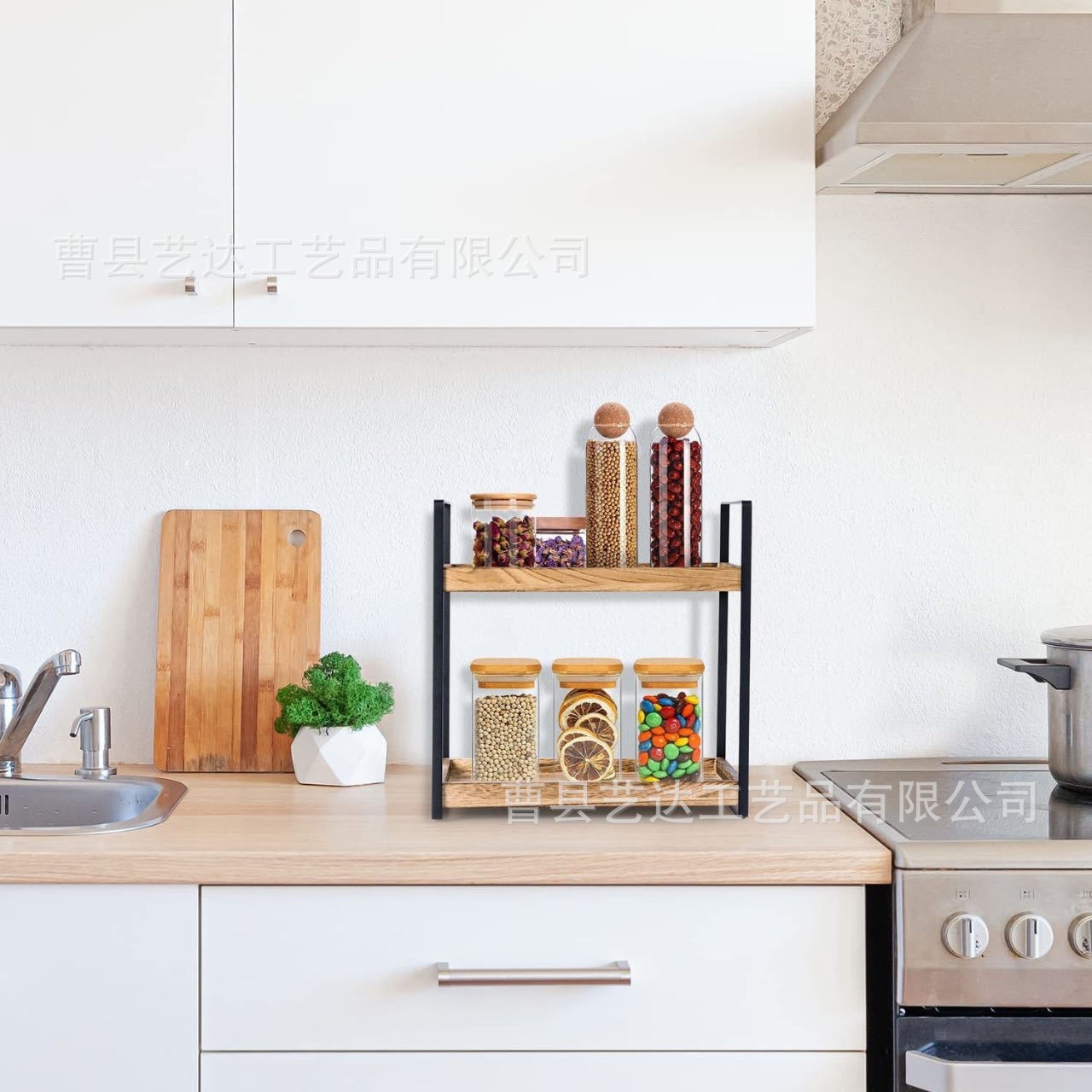 목재 수납 선반, 욕실 세면도구 수납 선반, 간단한 데스크탑 원목 꽃 선반, 주방 다층 조미료 선반스토어 가기