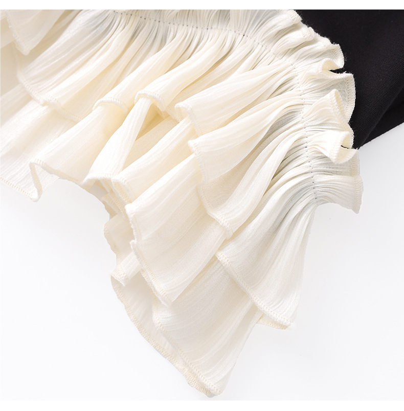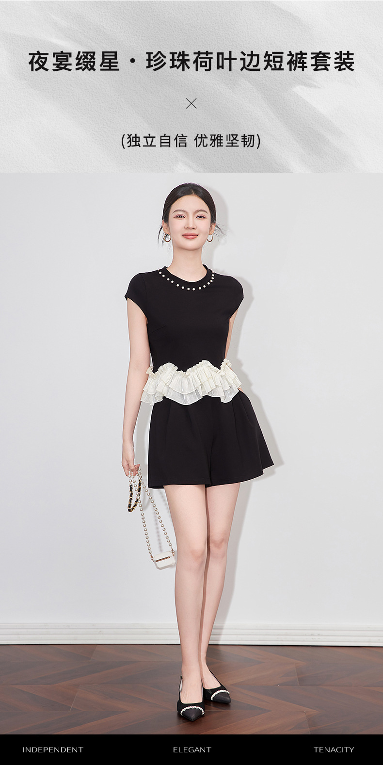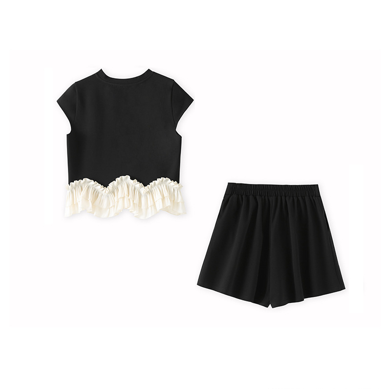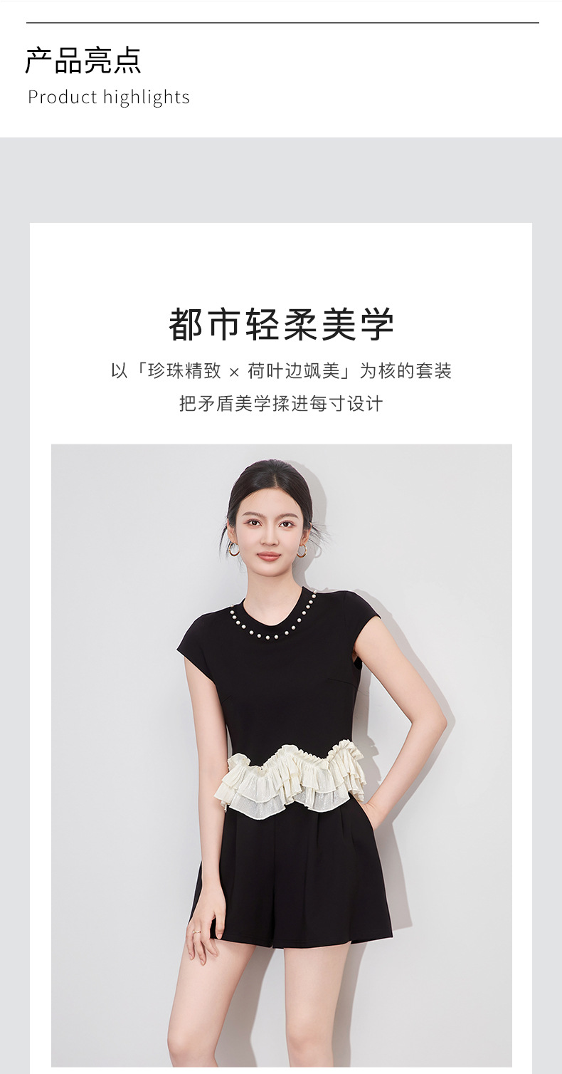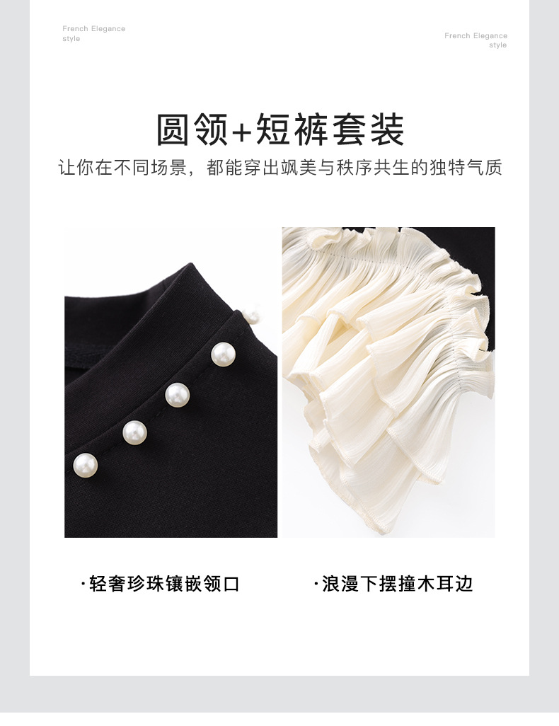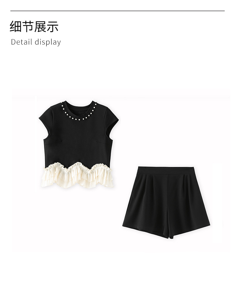 2509308-샤오샹펑 비즈 라운드넥 러플탑+패셔너블한 연령감소 반바지 세트 난유여성 여름