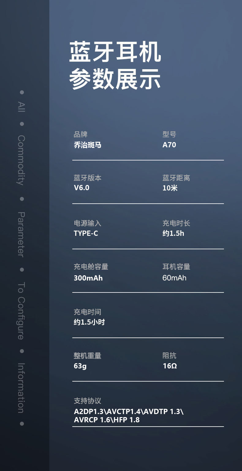 Bluetooth 무선 헤드셋 국경 간 A70 헤드셋 장기간 착용 통증 없음 헤드셋 Bluetooth 긴 배터리 수명 소음 감소 Bluetooth 헤드셋