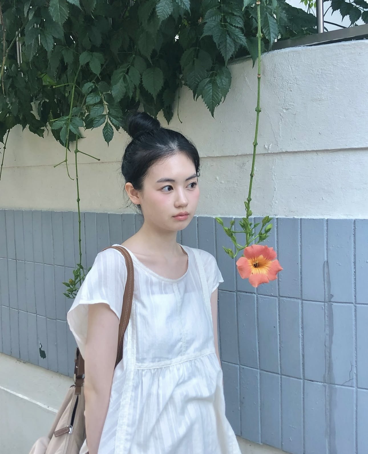 레이스 플라워 데코레이션과 면 소재의 민소매 라운드넥 셔츠/블라우스스토어 가기