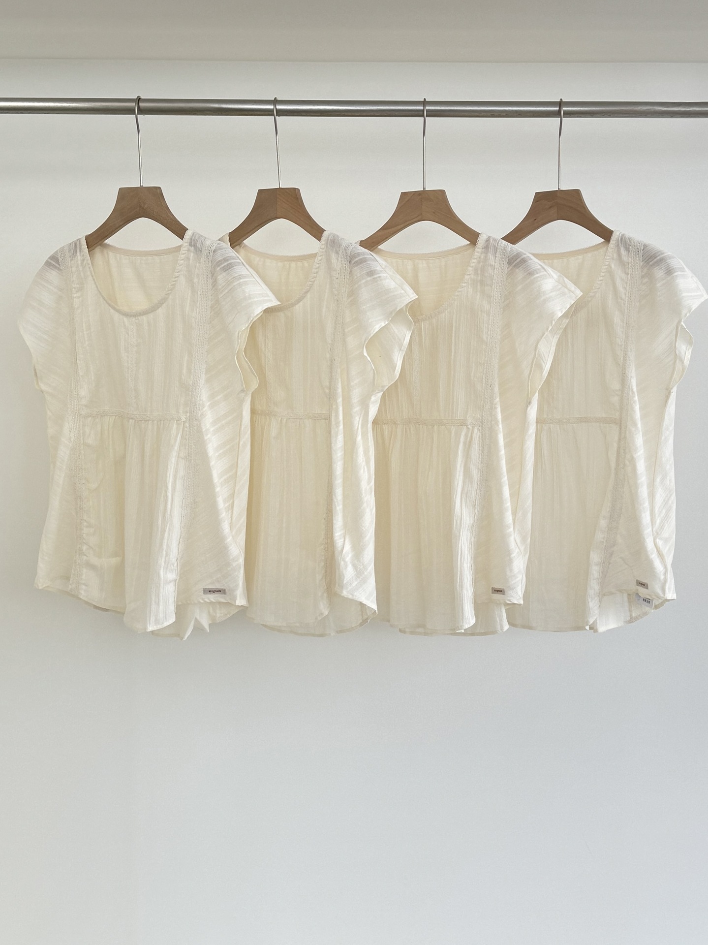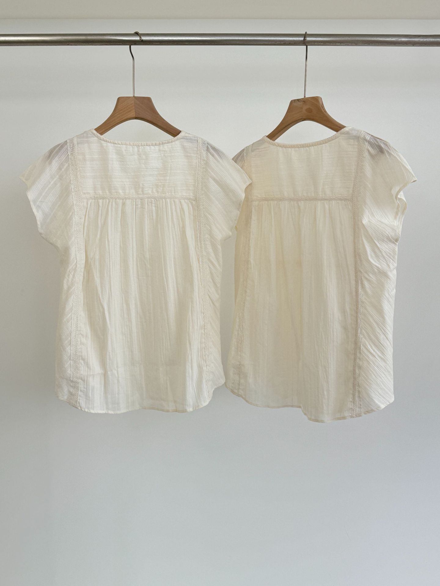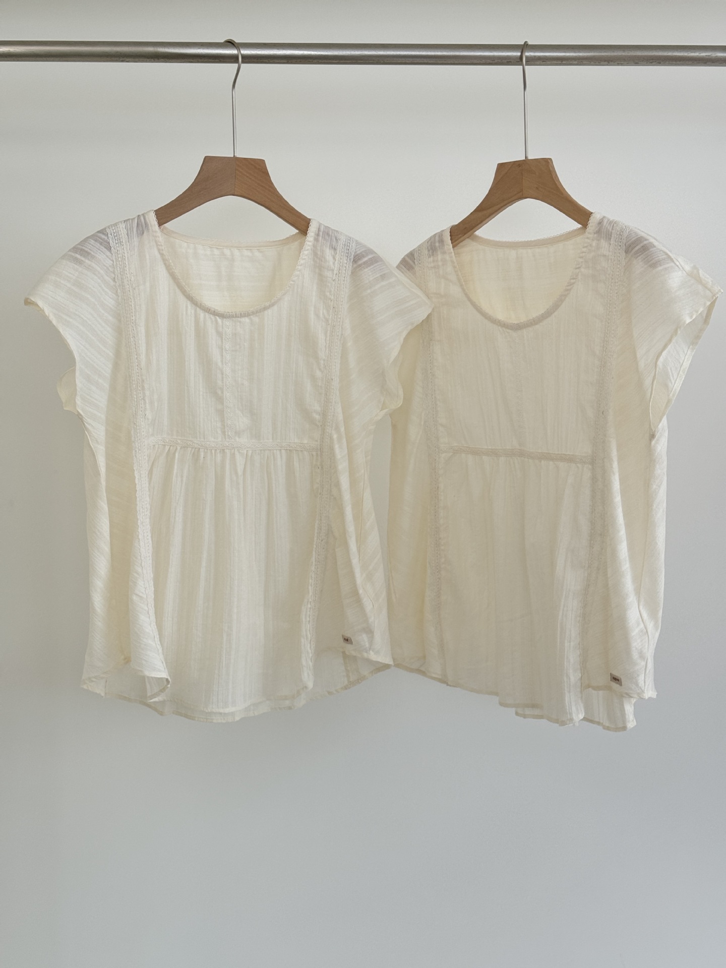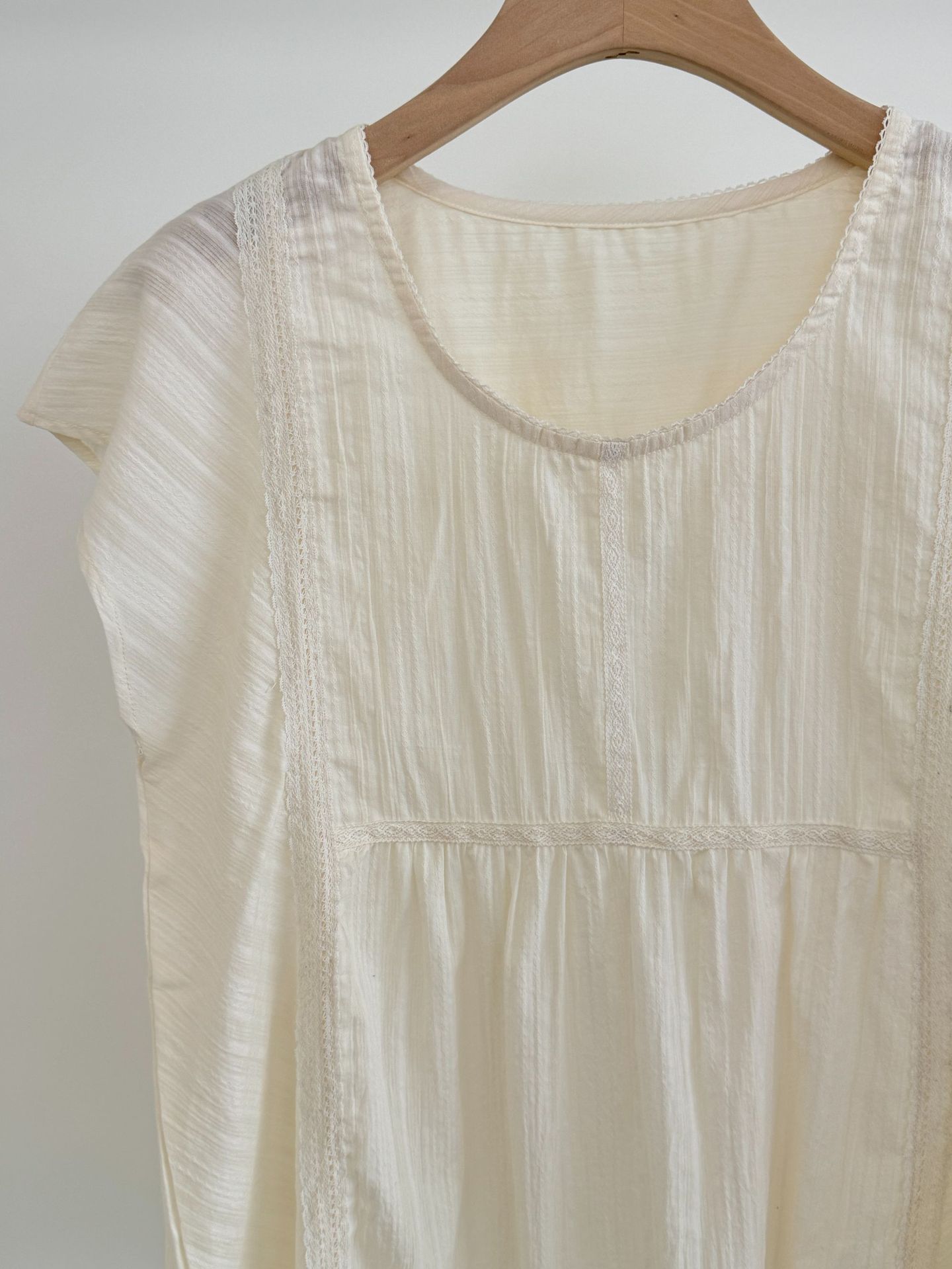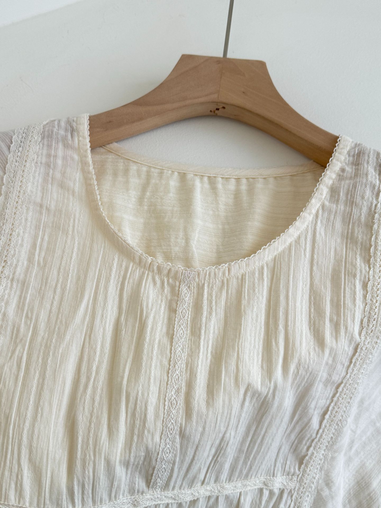 레이스 플라워 데코레이션과 면 소재의 민소매 라운드넥 셔츠/블라우스