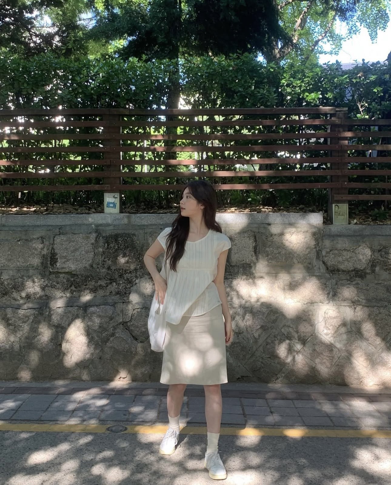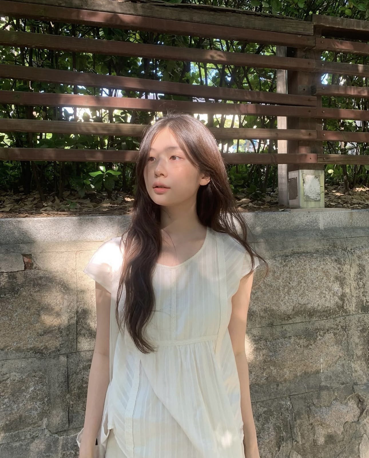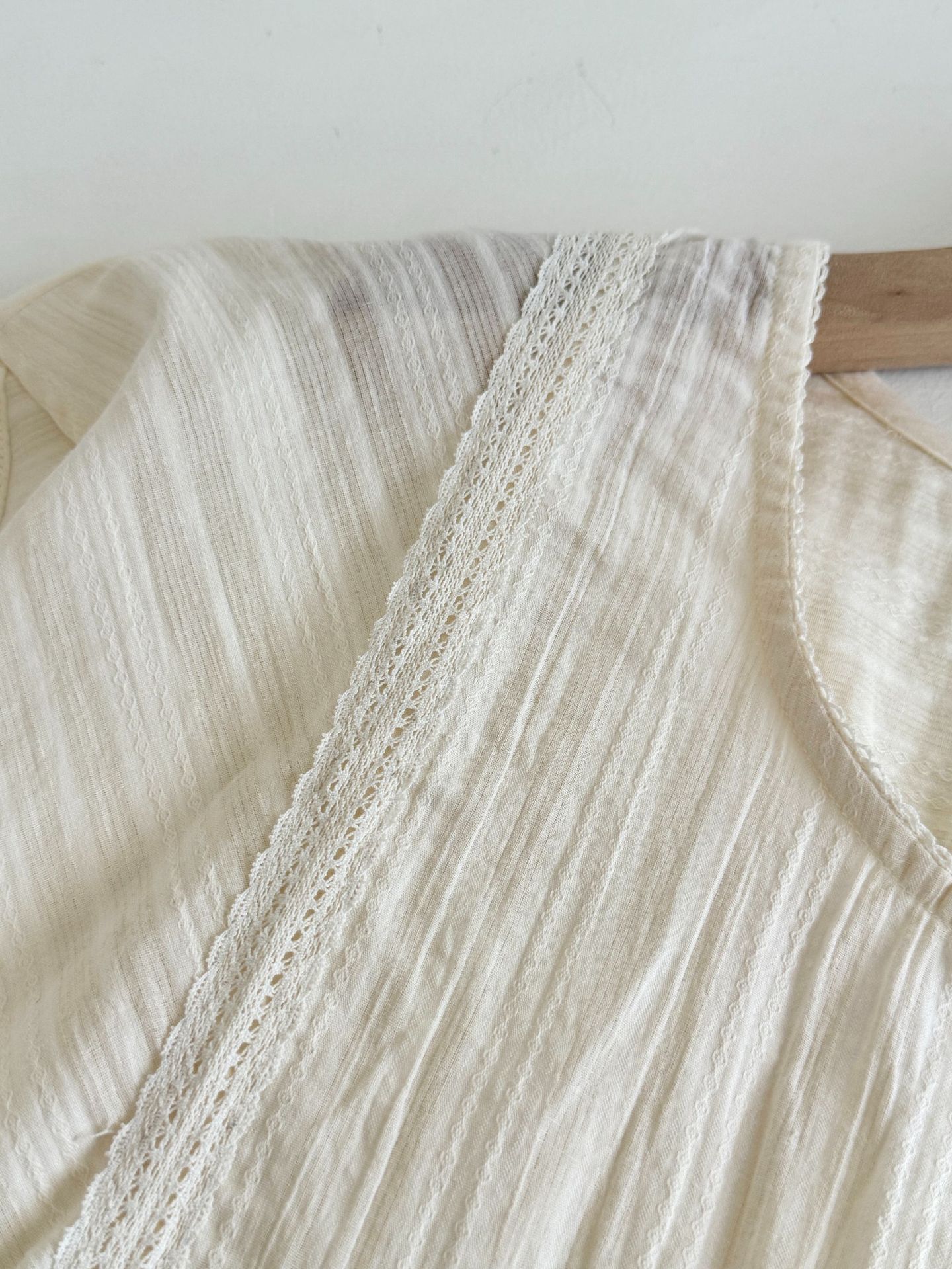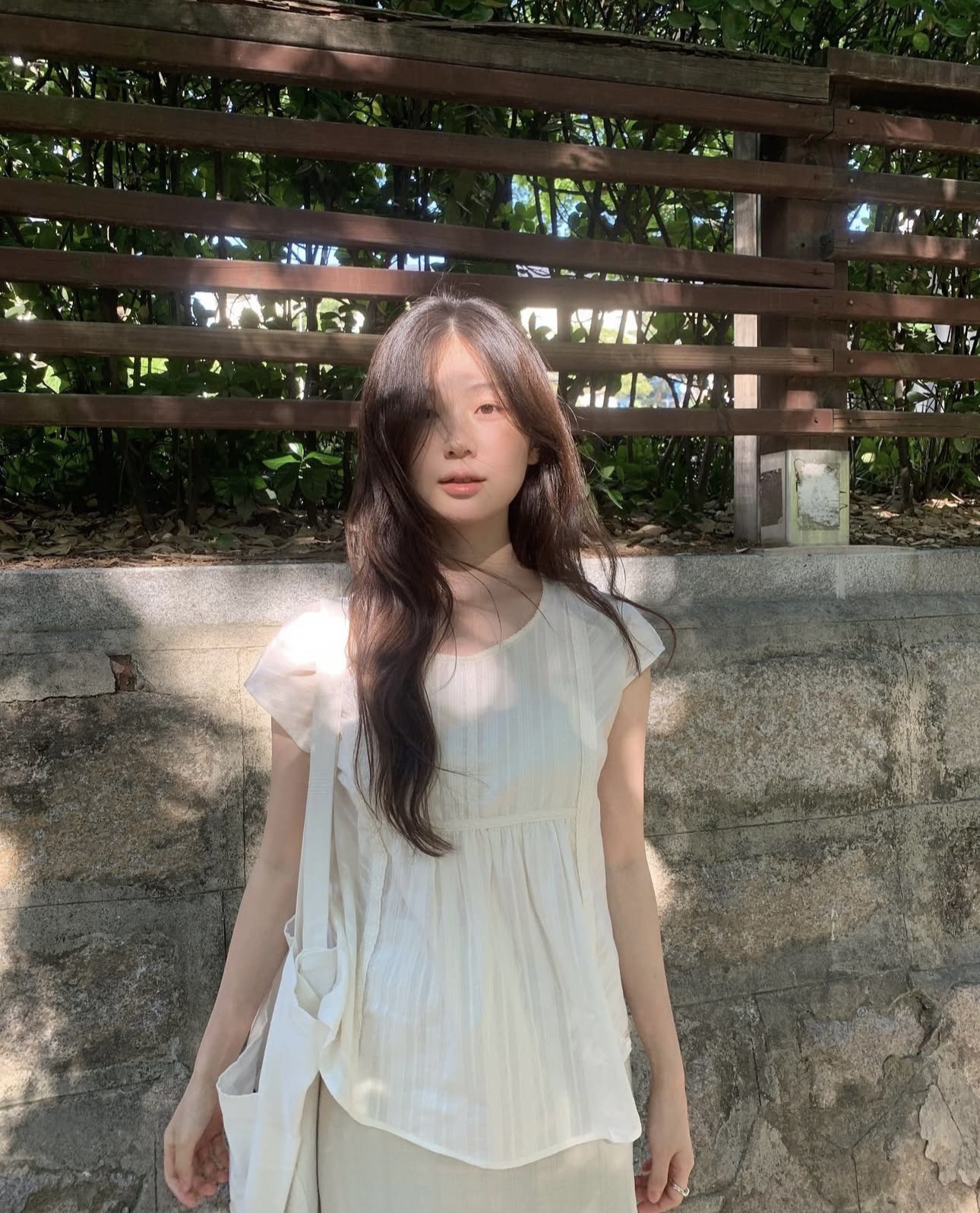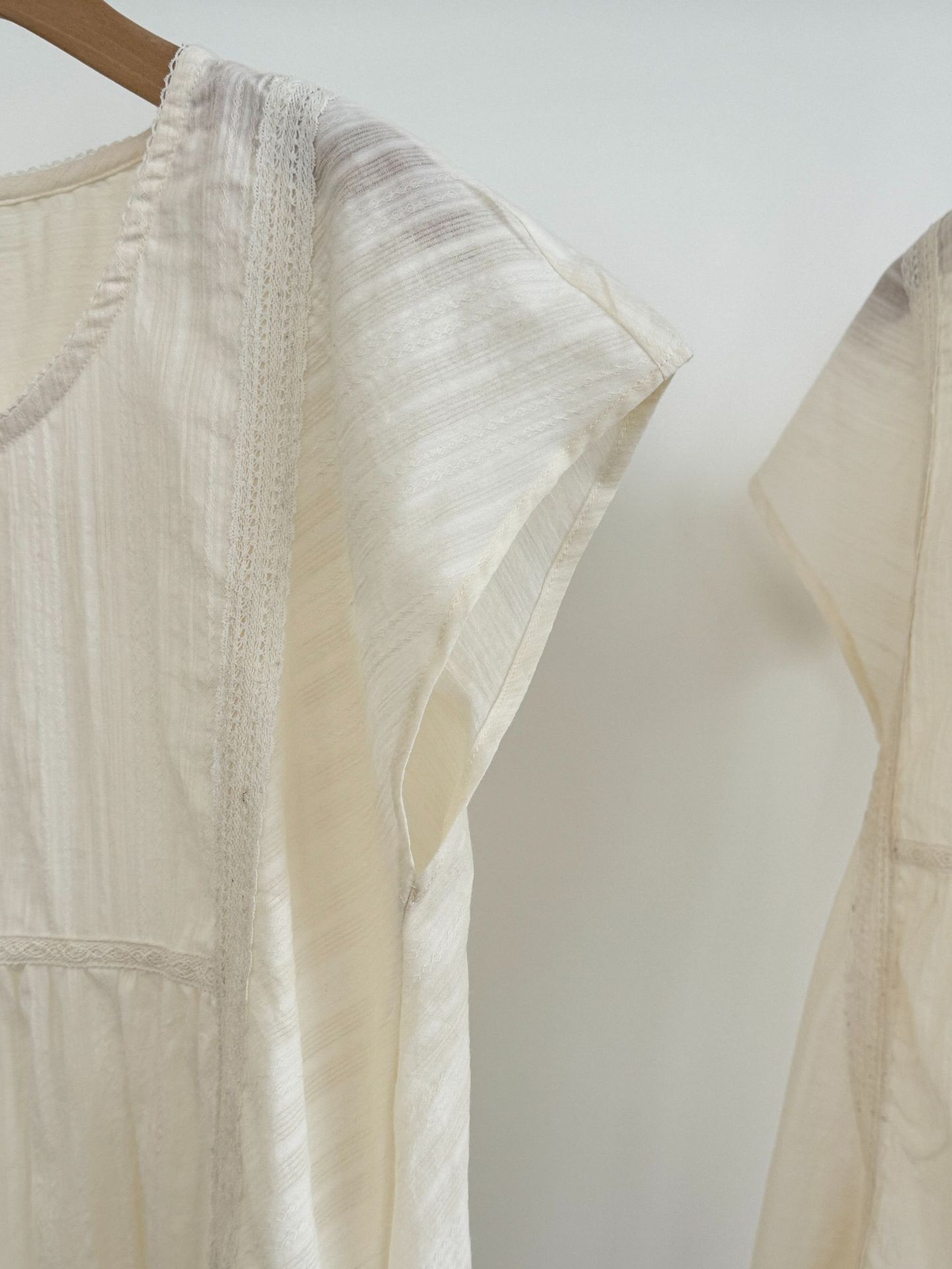 레이스 플라워 데코레이션과 면 소재의 민소매 라운드넥 셔츠/블라우스