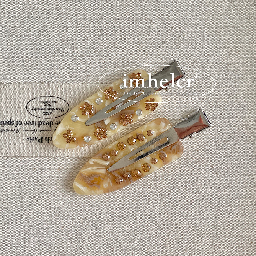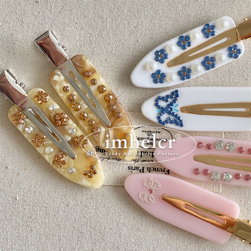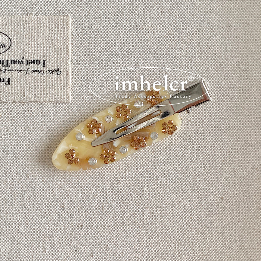 블로거와 같은 스타일의 레트로 다이아몬드 꽃 무봉제 클립 ~ 올드 머니 스타일 절묘한 아세테이트 사이드 클립 앞머리 클립 여성용 덕빌 클립