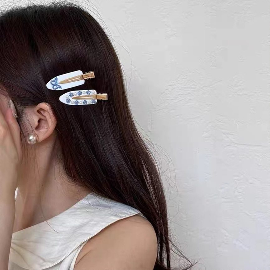 블로거와 같은 스타일의 레트로 다이아몬드 꽃 무봉제 클립 ~ 올드 머니 스타일 절묘한 아세테이트 사이드 클립 앞머리 클립 여성용 덕빌 클립스토어 가기
