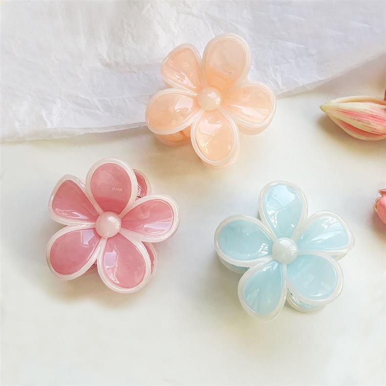젤리 컬러의 고급 해변 휴가 스타일 플루메리아 클립, 질감이 있는 다용도 포니테일 클립, 반묶음 샤크 클립 헤어 액세서리