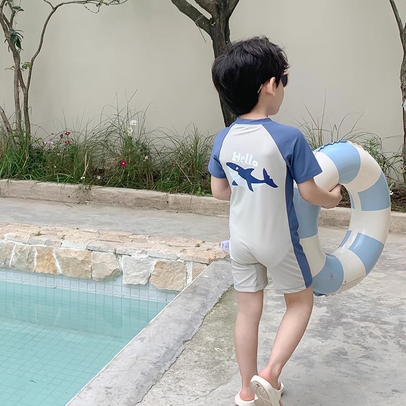 어린이 원피스 반팔 수영복 소년 여름 귀여운 상어 자외선 차단제 속건성 어린이 해변 휴가 정장