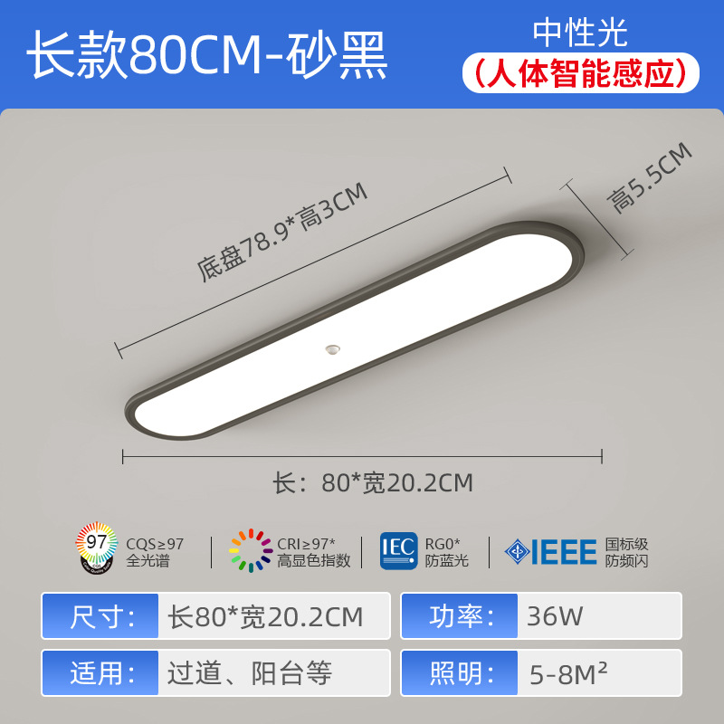 • 롱 스타일 - 샌드 블랙 80*20cm - 중성광 - 인체 지능형 센서