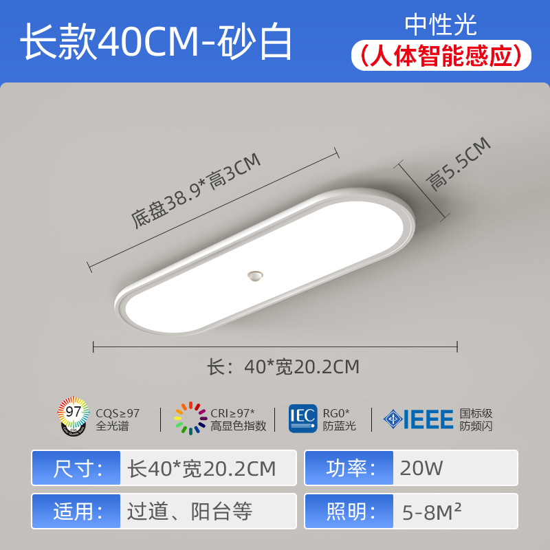 • 롱 스타일 - 샌드 화이트 40*20cm - 중성광 - 인체 지능형 센서