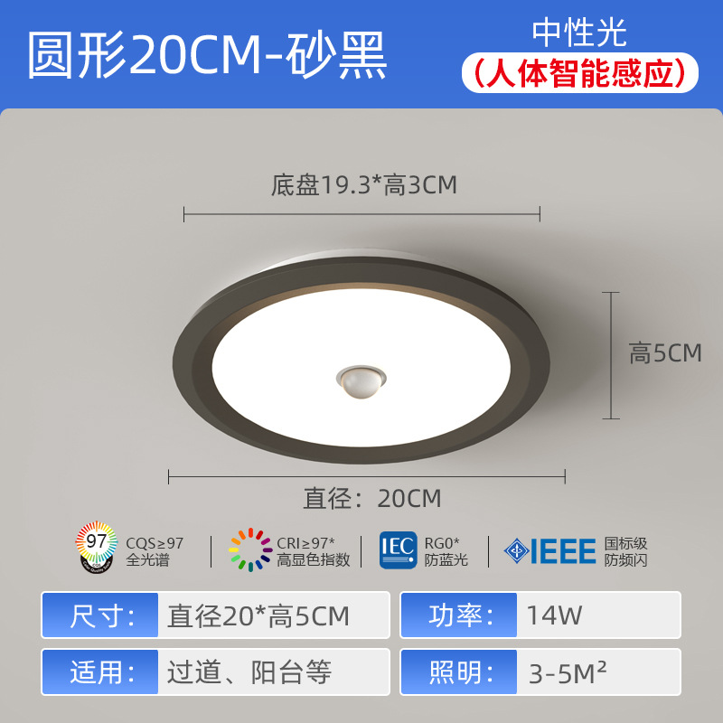 • 원형 - 샌드 블랙 20cm - 중성광 - 인체 지능형 센서