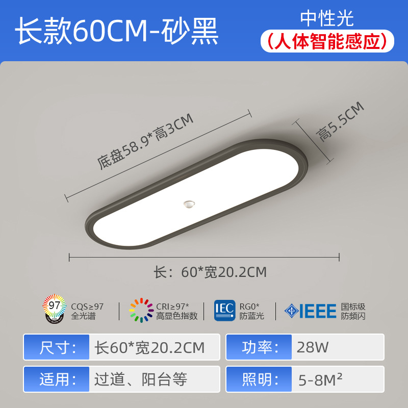• 롱 스타일 - 샌드 블랙 60*20cm - 중성광 - 인체 지능형 센서