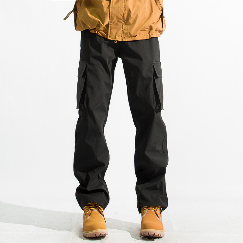 봄과 가을 소년 캐주얼 블랙 스트레이트 오버올 트렌디 하이킹 바지 대형 포켓 방수 야외 충전 바지