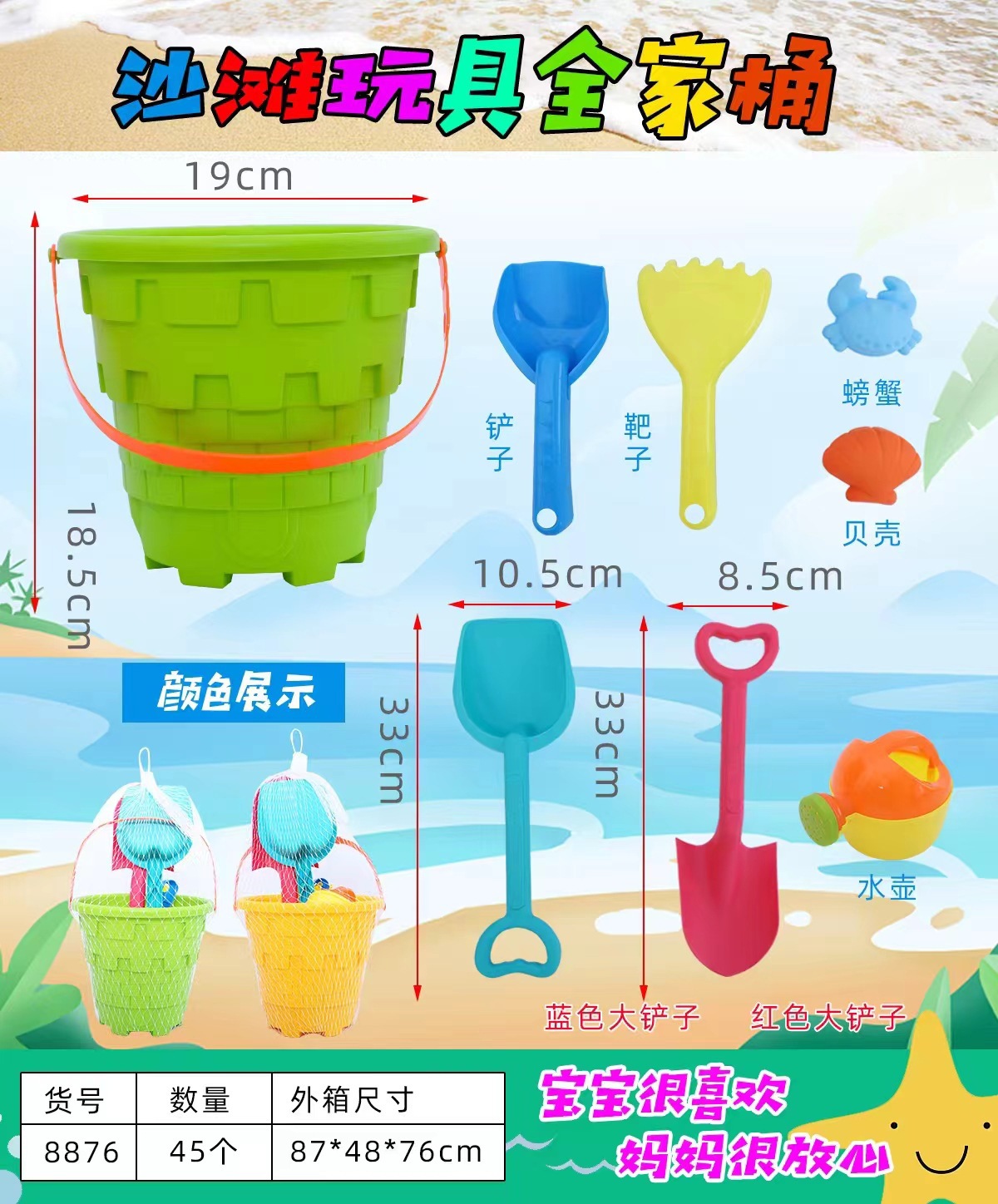 어린이 해변 물놀이 모래 해변 양동이 모래 스페이더 야외 장난감 놀이 공원 훈련 수업 선물 노점 도매스토어 가기