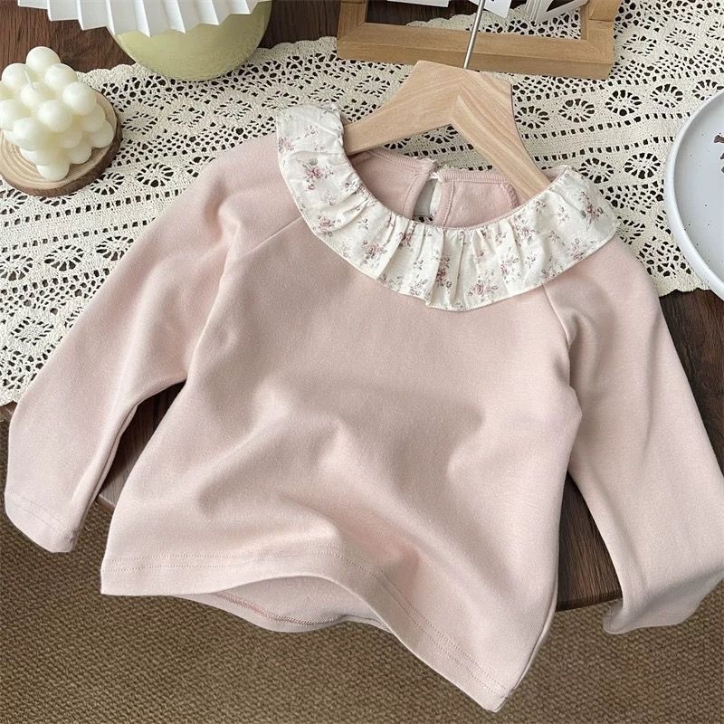 한국 가을 소녀 아기 어린이 작은 꽃 연잎 칼라 긴팔 바닥 셔츠 어린이 옷깃 긴팔 티셔츠 탑스토어 가기