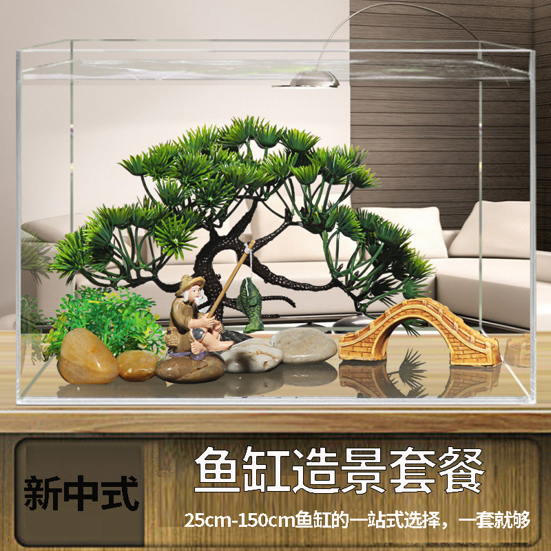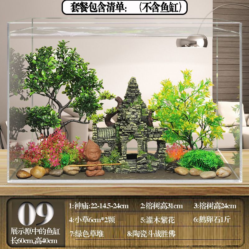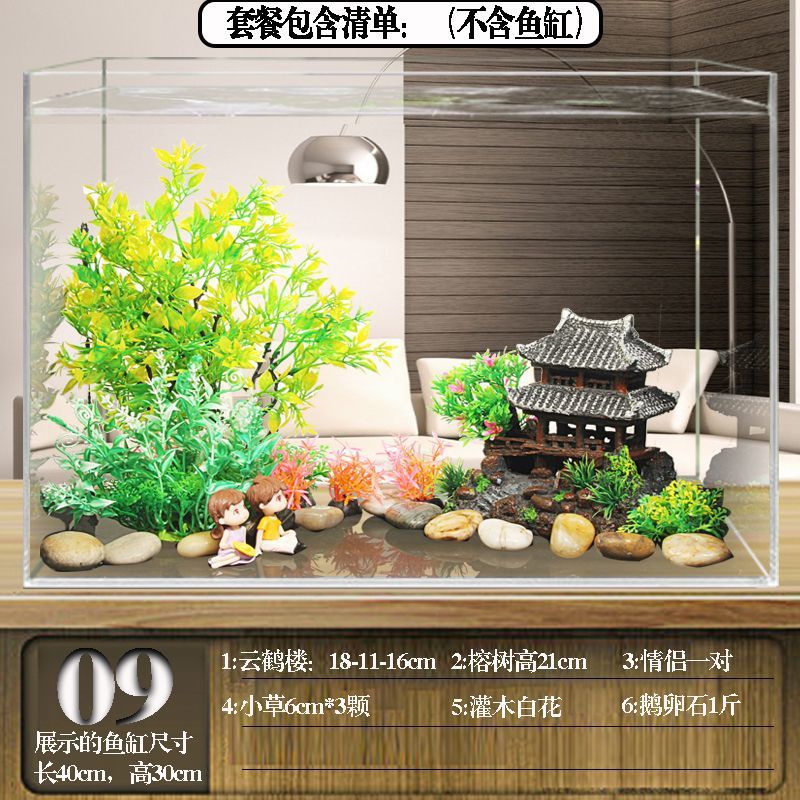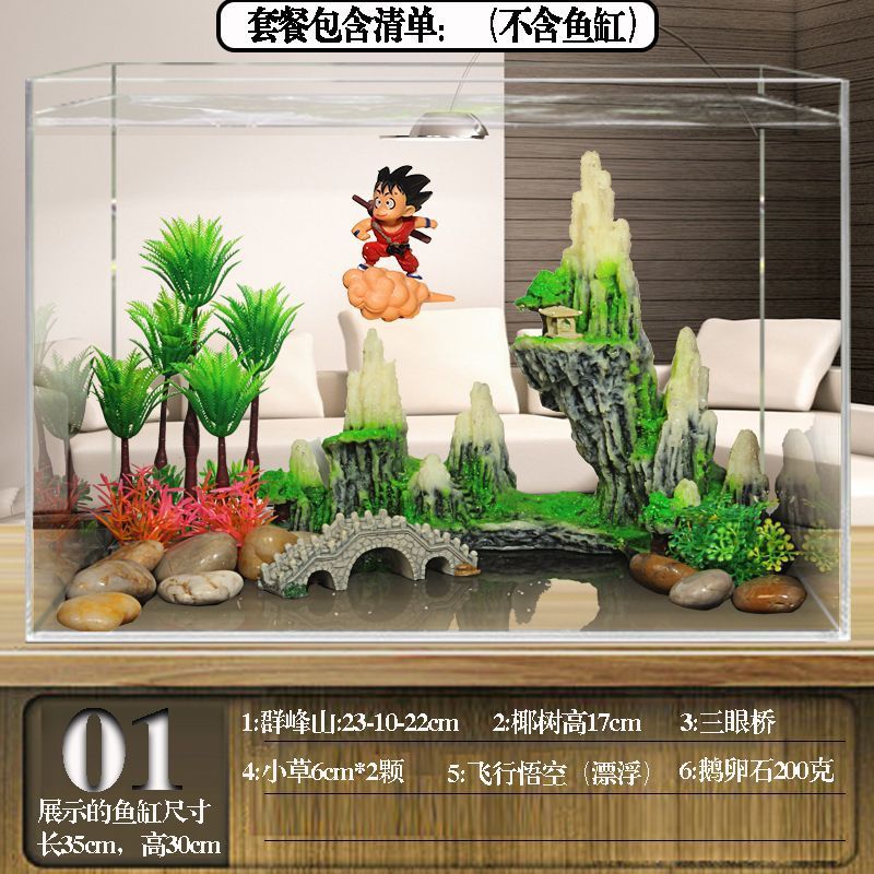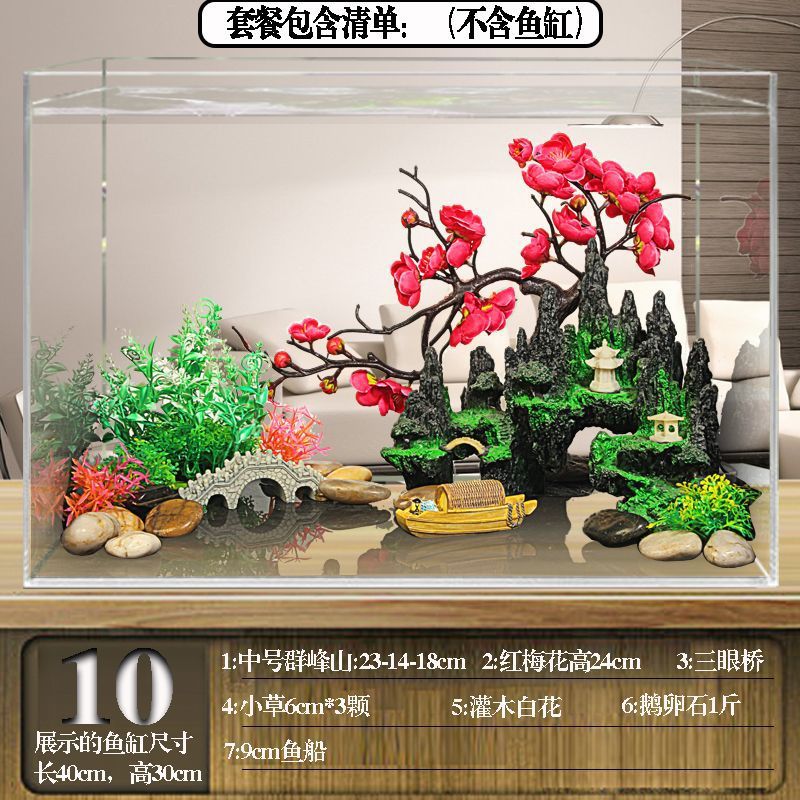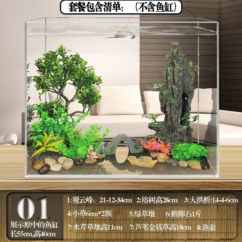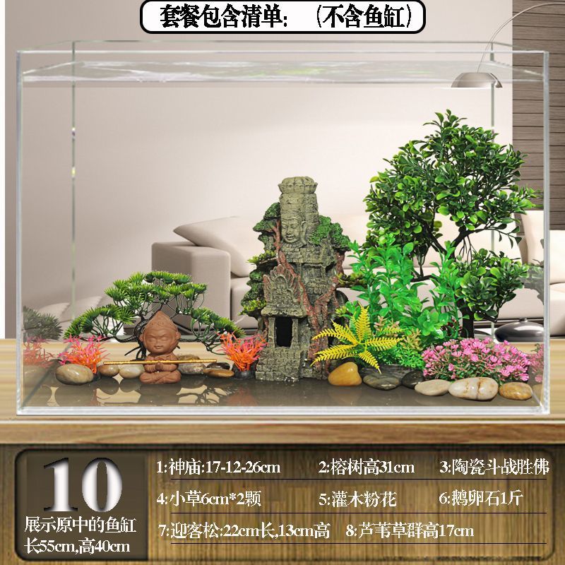 수조 조경 패키지, 석가문 장식, 수생 식물 전체 세트, 수족관 세트, 작은 다리 장식품, 피난처, 시뮬레이션 스톤