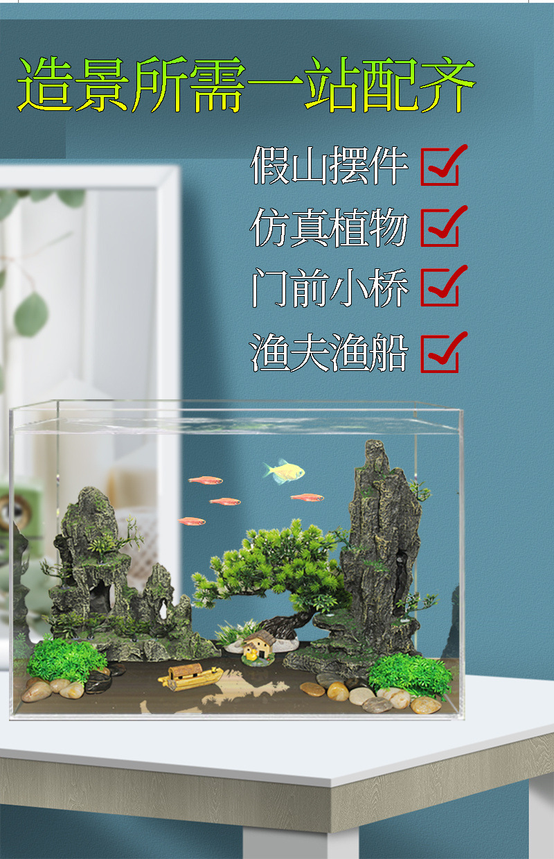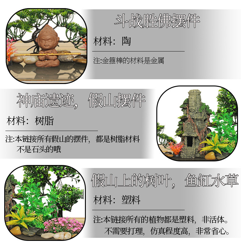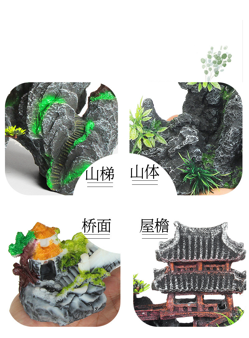 수조 조경 패키지, 석가문 장식, 수생 식물 전체 세트, 수족관 세트, 작은 다리 장식품, 피난처, 시뮬레이션 스톤스토어 가기