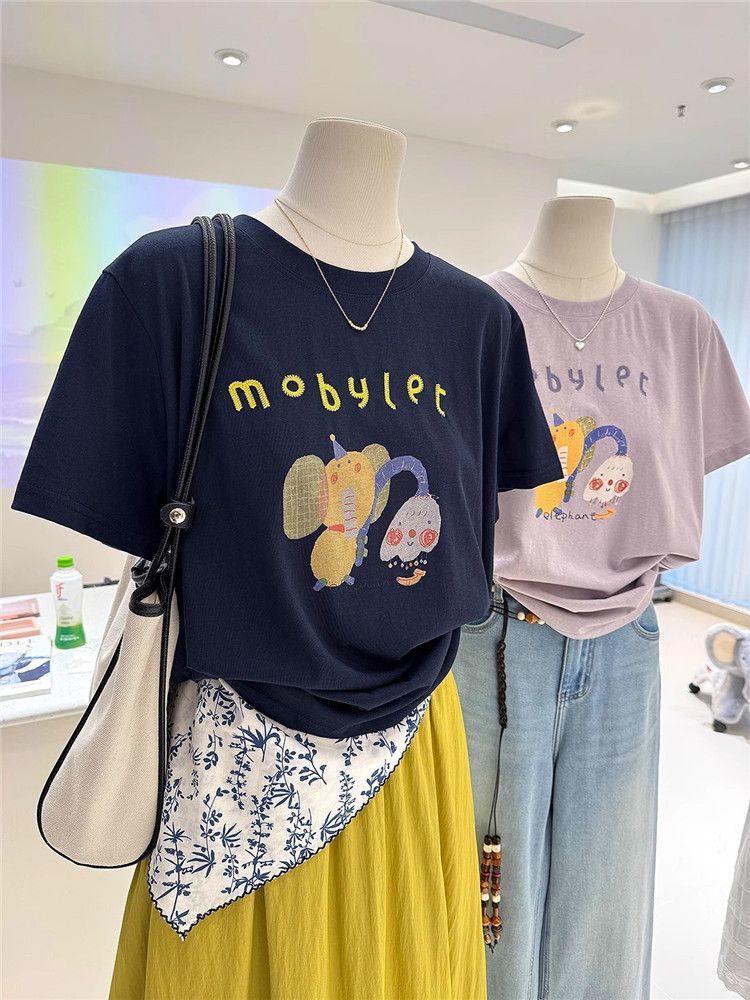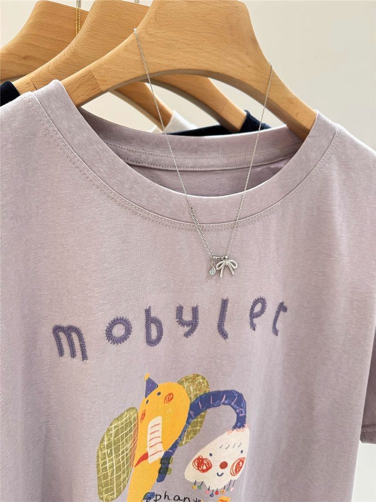 여름 신작 루즈하고 슬림한 반팔 한국 스타일 다용도 만화 연령 감소 프린트 바닥 셔츠 얇은 티셔츠 여성상의스토어 가기