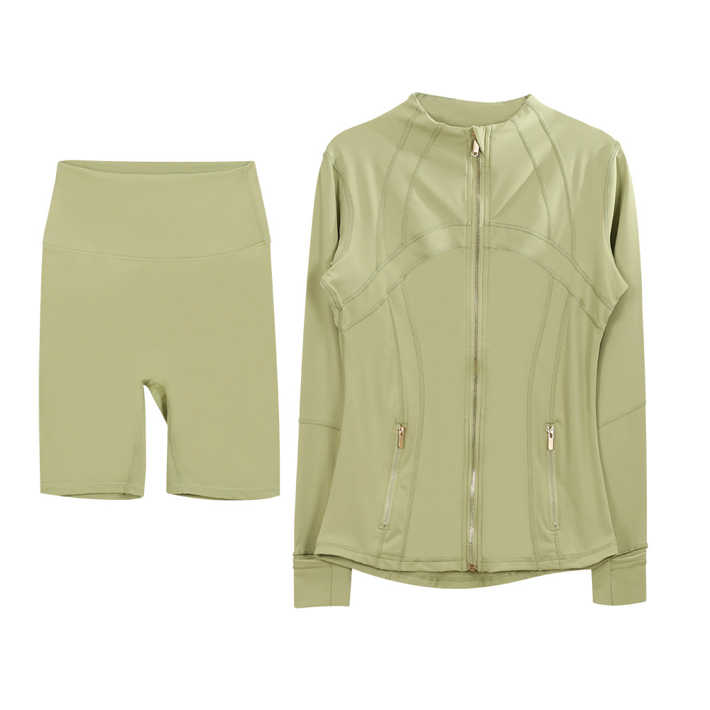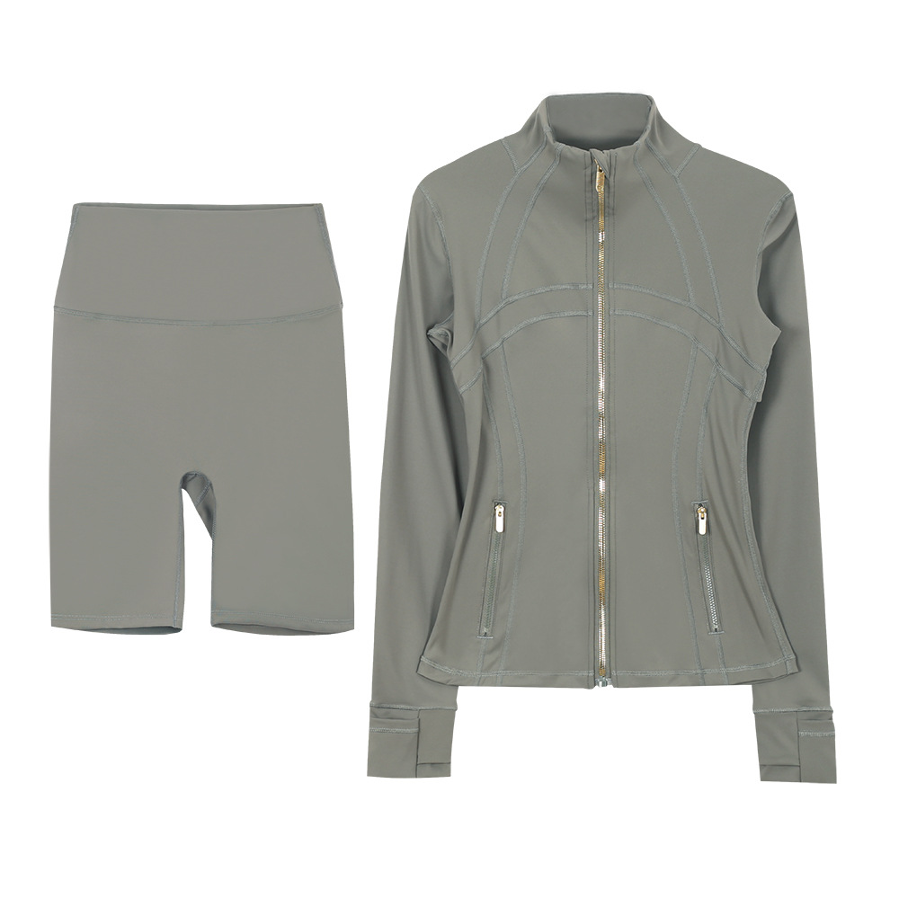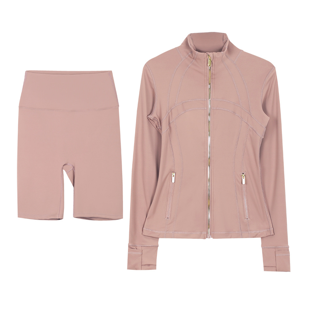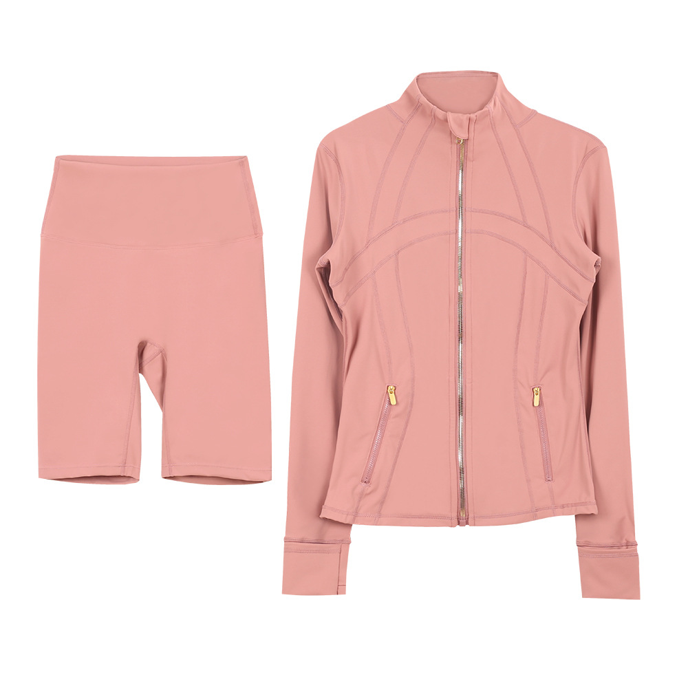 (재고 있음) 5부 팬츠 골드 재킷 슈트 탑 긴팔 여성 슬림 재킷 스트레치 스포츠 러닝 요가웨어