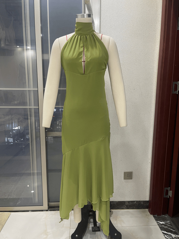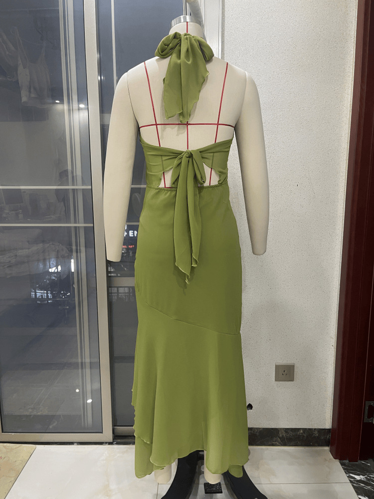 아마존 국경 간 독립 스테이션 유럽과 미국 스타일의 백리스 솔리드 컬러 작은 디자인 러플 드레스 여성용 슬림 롱 스커트